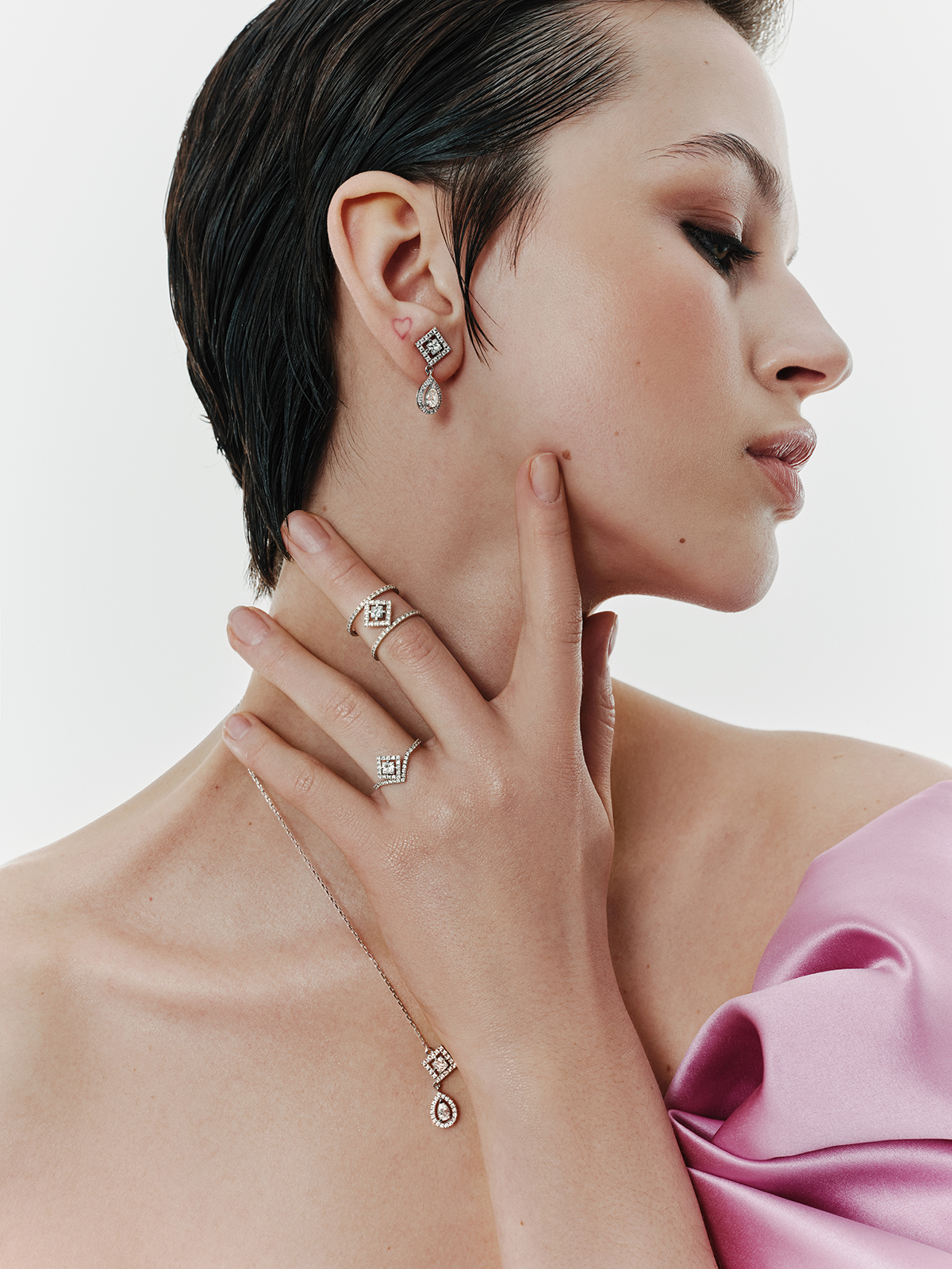 Кожна прикраса бренду — це результат ювелірної точності, досвіду та любові до справжнього мистецтва. Наші майстри вміють підкреслити природну красу діаманта, створюючи гармонію форми, блиску та світла.