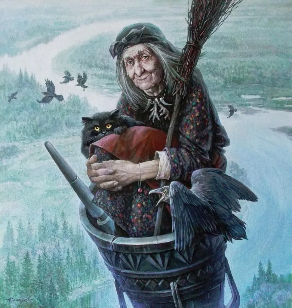 Популярність у Росії: Хоча образ Баби Яги є спільним, він набув найбільшої популярності та деталізації саме у російських народних казках (наприклад, “Василиса Прекрасна”, “Гуси-лебеді”), де її атрибути (хатинка на курячих ніжках, ступа) стали найбільш канонічними у світовій культурі завдяки російським збіркам казок та ілюстраціям.