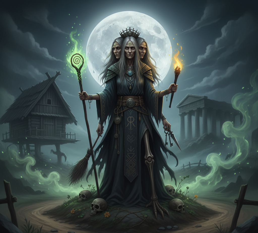 Пов’язаність з Гекатою: Відзначається її схожість із грецькою богинею чаклунства та перехресть – Гекатою, яка також пов’язана зі світом мертвих.