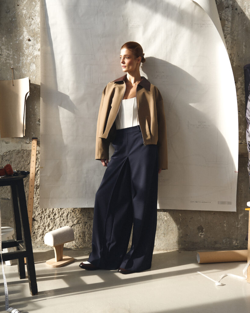 Весняна колекція народилася з роздумів про багатогранність і цілісність жінки. Тут немає протиставлень – пріоритетом є природний баланс і зростання, що відбувається через дослідження себе. Кампейн, знятий у просторі, схожому на майстерню, підкреслює значення процесу як у створенні одягу, так і в особистісному становленні.