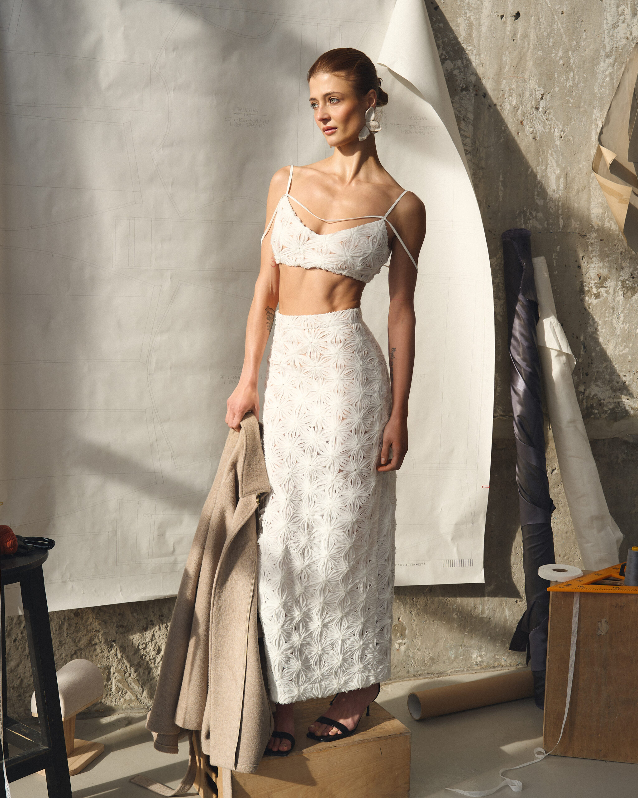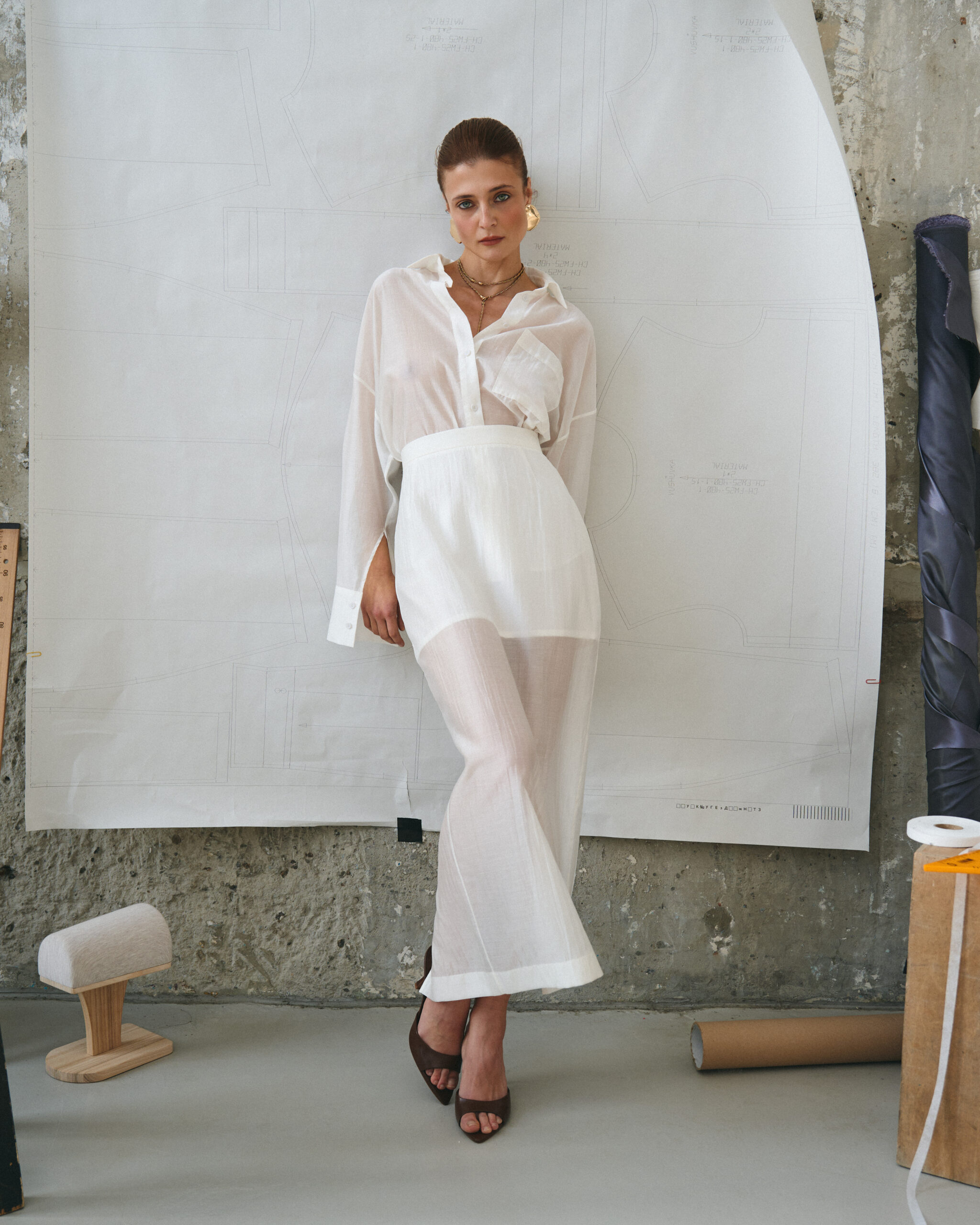 Весняна колекція народилася з роздумів про багатогранність і цілісність жінки. Тут немає протиставлень – пріоритетом є природний баланс і зростання, що відбувається через дослідження себе. Кампейн, знятий у просторі, схожому на майстерню, підкреслює значення процесу як у створенні одягу, так і в особистісному становленні.