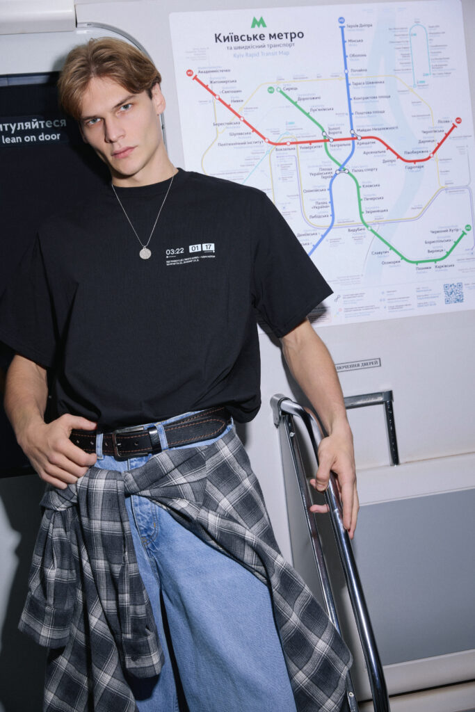 До колекції увійшли: футболка з touch-ефектом, що змінює колір при дотику; футболки з принтами мапи метро та мозаїкою «Золотих воріт»; лонг із зображенням жетона; картата сорочка; чорно-білий шарф; шопер; шкарпетки; стікерпак; прикраса у формі жетона; брелок у вигляді жетона і знака метро; хустка з елементом панно із станції метро «Хрещатик». Усі речі мають лаконічні силуети у стриманій стилістиці та кольорах метрополітену. Прибуток від продажів колекції, натхненної історією метрополітену, буде передано до фонду «Діти Героїв», який підтримує дітей, що втратили батьків через війну.