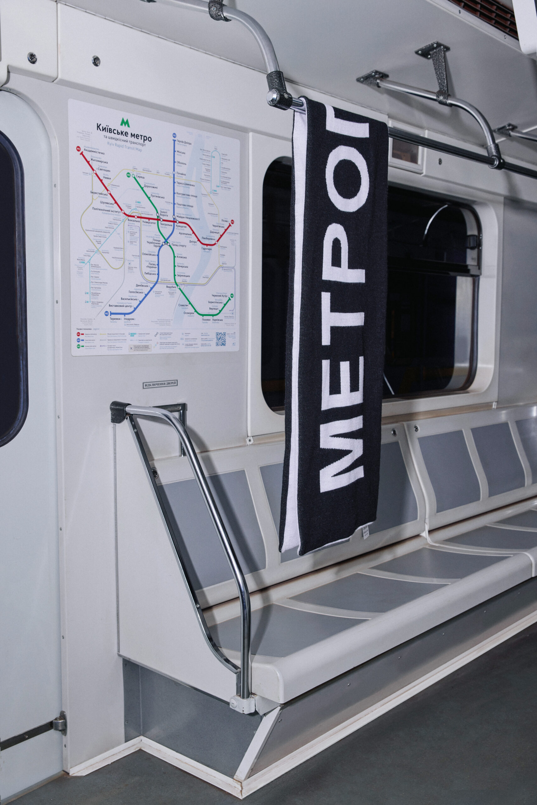 До колекції увійшли: футболка з touch-ефектом, що змінює колір при дотику; футболки з принтами мапи метро та мозаїкою «Золотих воріт»; лонг із зображенням жетона; картата сорочка; чорно-білий шарф; шопер; шкарпетки; стікерпак; прикраса у формі жетона; брелок у вигляді жетона і знака метро; хустка з елементом панно із станції метро «Хрещатик». Усі речі мають лаконічні силуети у стриманій стилістиці та кольорах метрополітену. Прибуток від продажів колекції, натхненної історією метрополітену, буде передано до фонду «Діти Героїв», який підтримує дітей, що втратили батьків через війну.