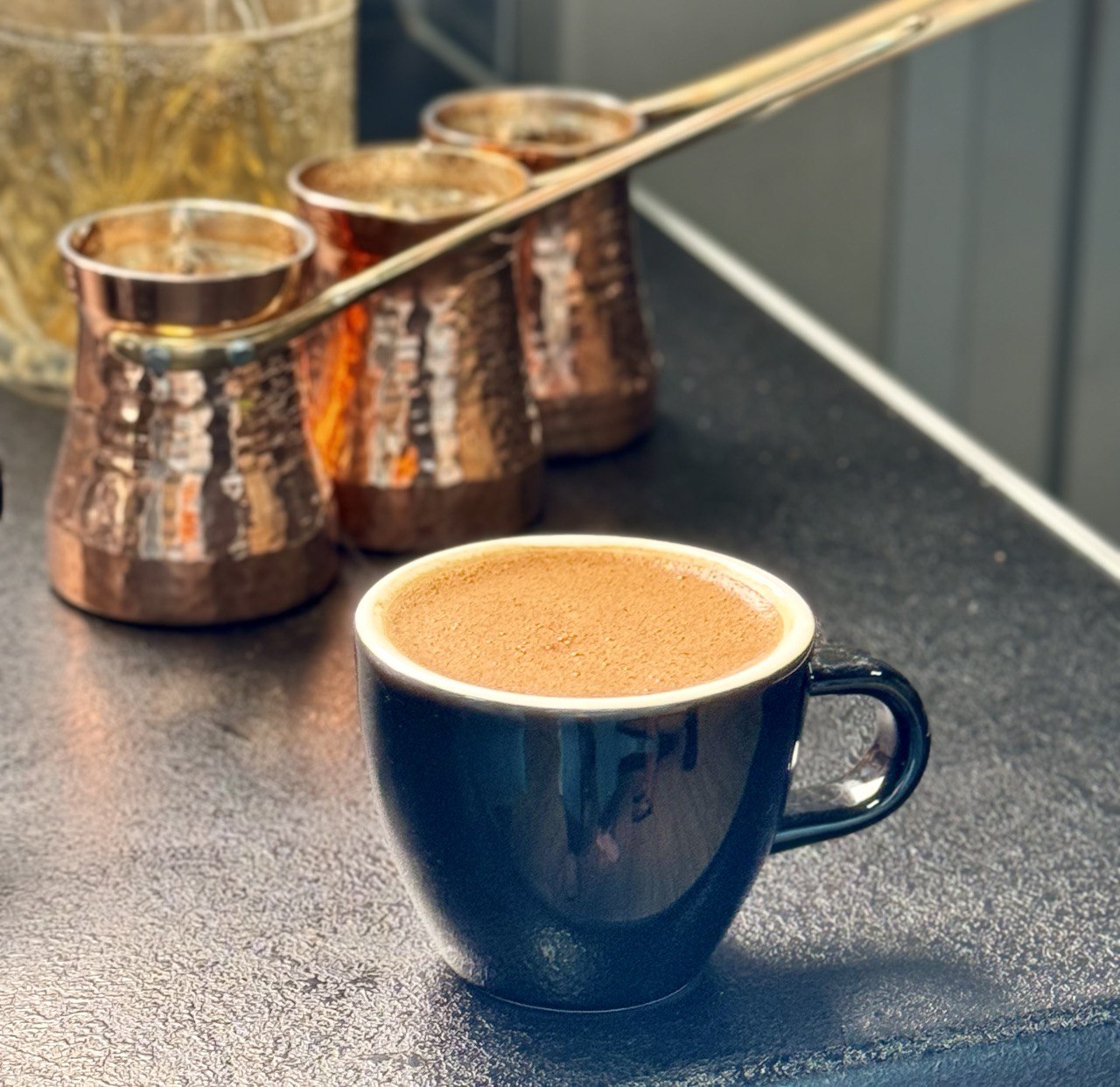 - Турецька кава в джезві: густий напій зі щільною піною, що має статус нематеріальної культурної спадщини ЮНЕСКО.
