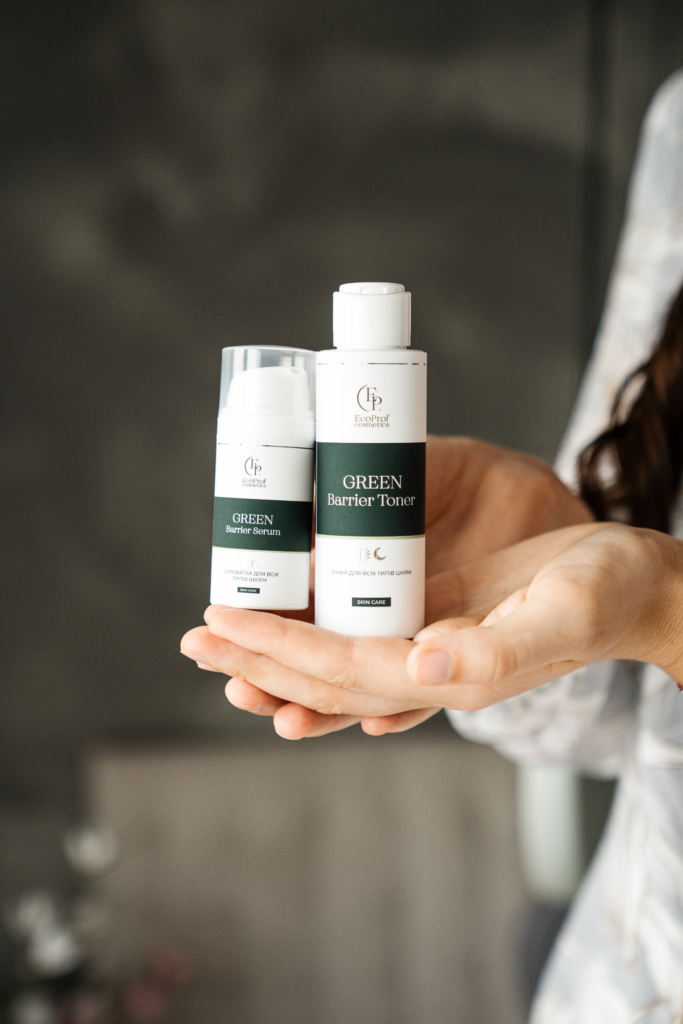 - Тонер green barrier toner — тонер із пре- та пробіотиками та лізатами біфідобактерій, які сприяють відновленню функцій шкірного бар’єру, підсилюють захисні властивості та зменшують відчуття чутливості шкіри.
