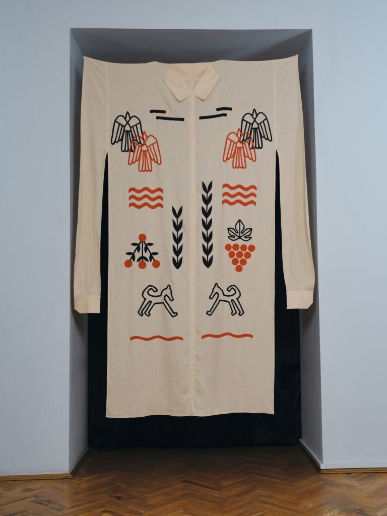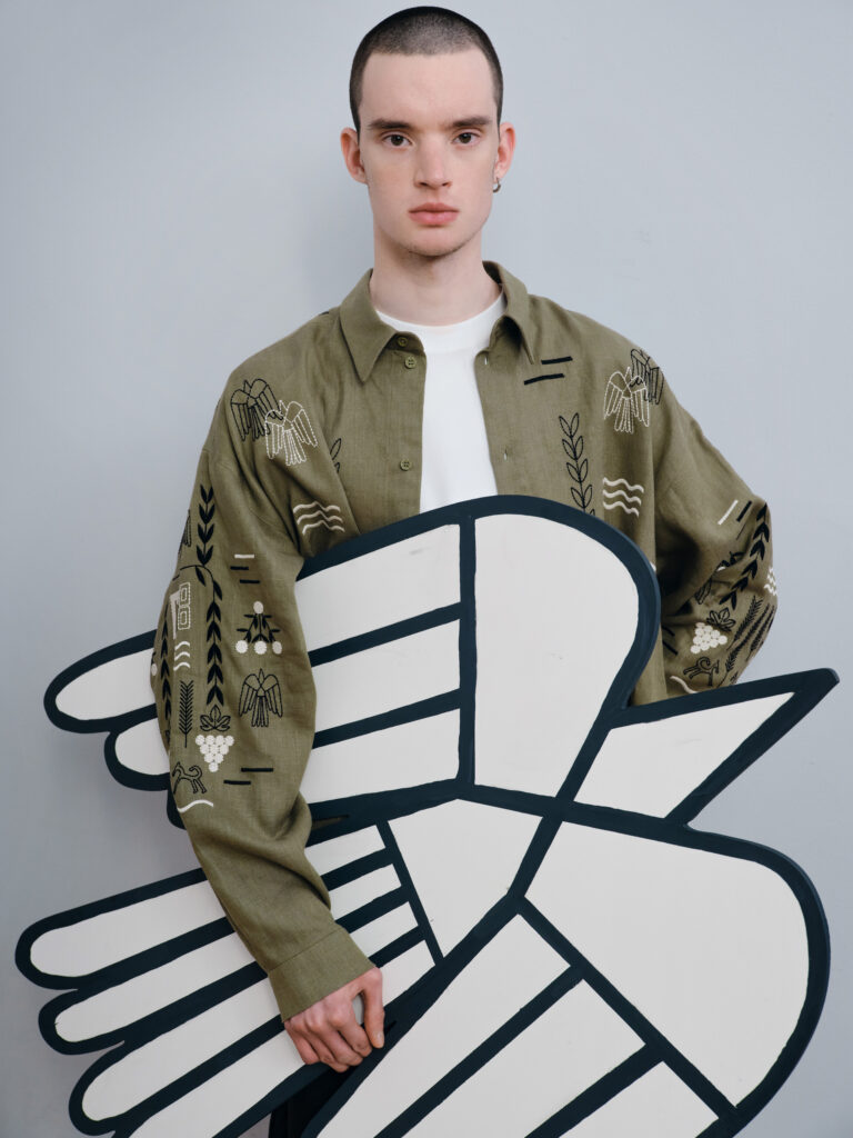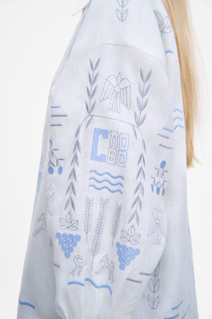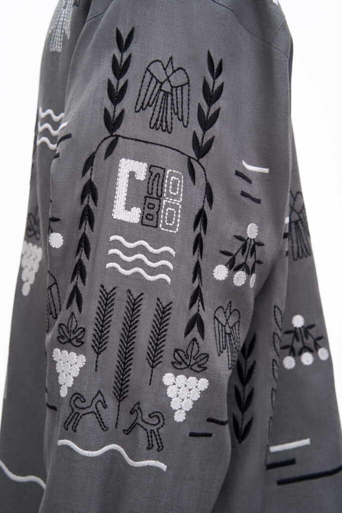 Дизайн виробу присвячений харківському будинку «Слово», у якому мешкала українська інтелігенція. Її представники, навмисно зібрані в одному місці, зазнали репресій та переслідувань. Вишиті елементи сорочки відсилають до цих діячів — Анатолія Петрицького, Миколи Хвильового, Леся Курбаса, Остапа Вишні, Валер’яна Поліщука, Михайла Ялового.