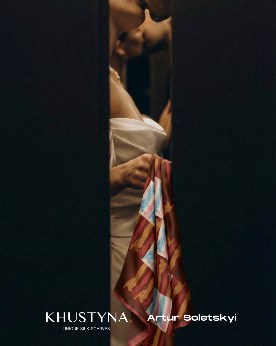 «Ми хотіли створити картини на шовку, які хочеться розглядати. Це як у стосунках: спочатку ти бачиш загальну картину, а потім починаєш розрізняти деталі, рухи, погляди та дрібні дотики, які й формують ваш спільний світ», — ділиться команда бренду KHUSTYNA.