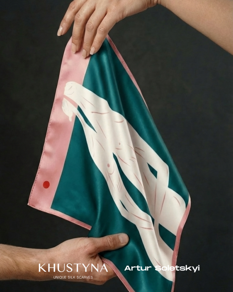 Бренд KHUSTYNA у колаборації з українським художником Артуром Солецьким створили нову колекцію шовкових хустин «INSTINCT», яка стала візуальним результатом дослідження «дорослої» любові.