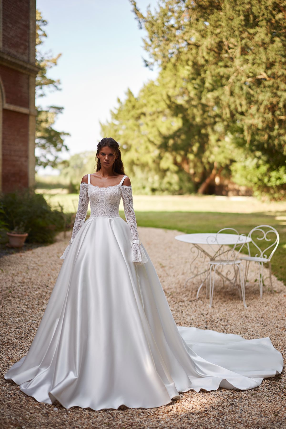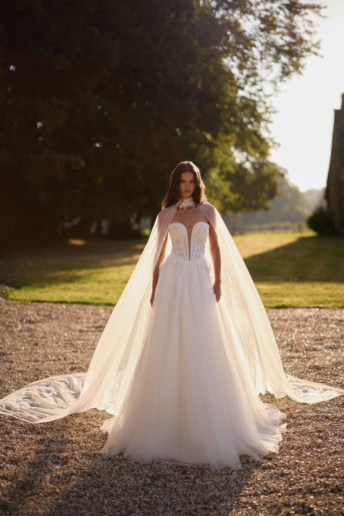 Коли сонце торкається моря, Нормандія дихає світлом. Воно м’яко ковзає по воді, зазирає у яблуневі сади, тремтить на пелюстках і зникає в тумані. У цей момент світло стає відчутним — як подих, як рух, як дотик. Саме це відчуття стало серцем нової колекції Luce Sposa Jardin de Lumière.