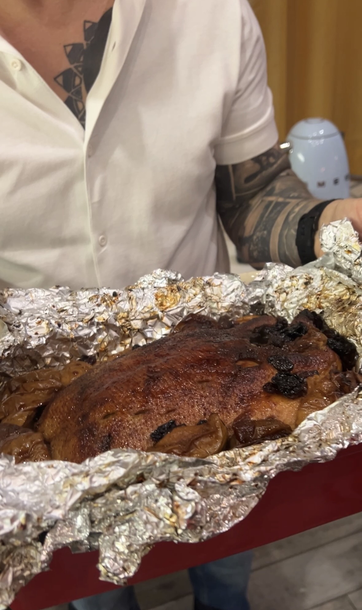 – Я дуже люблю готувати для своєї родини. Зазвичай це сніданки! Моє фірмове – гуакомоле на тості хліба та яєшня-скрембл, – розповідає Педан. – Інколи готую обід чи вечерю. Тут фірмове – карамелізовані курячі сердечка. Влітку, коли ми з сім’єю мешкаємо на дачі, на вогні роблю рибну юшку або плов. Але зараз хочу поділитися з вами особливою стравою! Її готуємо рідко, але, насправді, це один з улюблених рецептів у житті. Фірмова качка від бабусі моєї дружини, яку ще трішечки удосконалила моя дружина. А готую я зазвичай під чітким керівництвом коханої.