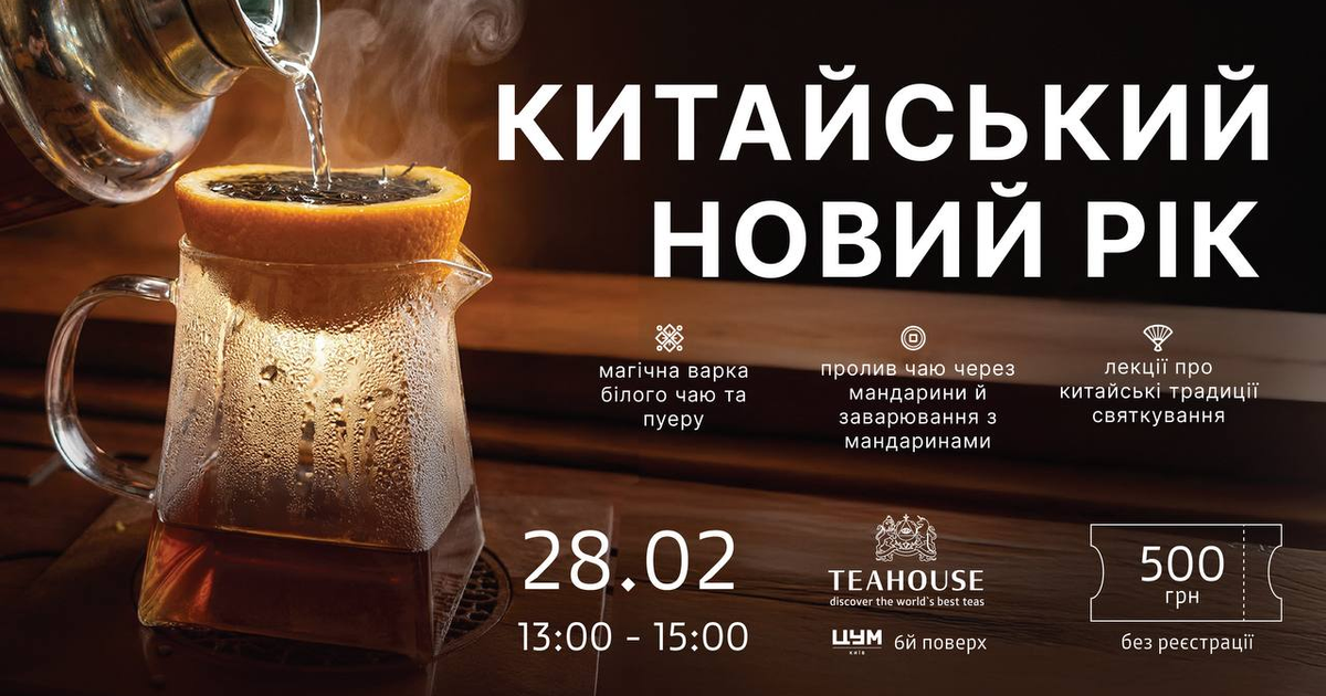 Вартість участі — 500 грн (включена дегустаційна піала). Завітайте проводжати зиму та надихатися східними традиціями разом з TEAHOUSE!