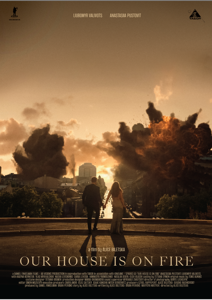 Над створенням фільму “Наш дім у вогні” працювала потужна міжнародна команда, що об’єднала кіномитців із США та України. До продюсерської групи увійшли Даніель Фінкельман та Олег Саітський — засновники нью-йоркської продакшн-компанії Sparks&Go. Олег Саітський є засновником студії Kinolime, яка орієнтована на міжнародну копродукцію. Він разом з Ерізель Раппопорт та Даніелем Фінкельманом стали продюсерами фільму «Виступ», який був показаний на кінофестивалі у Palm Springs. Даніель Фінкельман відомий своєю роботою над серіалом спільно з НВО «Один день у жовтні» та фільмами «Менаше» (мав прем’єру на кінофестивалі Sundance). До команди долучився Браян Перкінс, відомий за фільмом “Золоте Королівство”. Партнером виступила TABOR production — незалежна українська продюсерська компанія, відома своїми сміливими проєктами. Команда стала однією з перших, хто наважився знімати повнометражне художнє кіно у Києві після початку повномасштабного вторгнення.