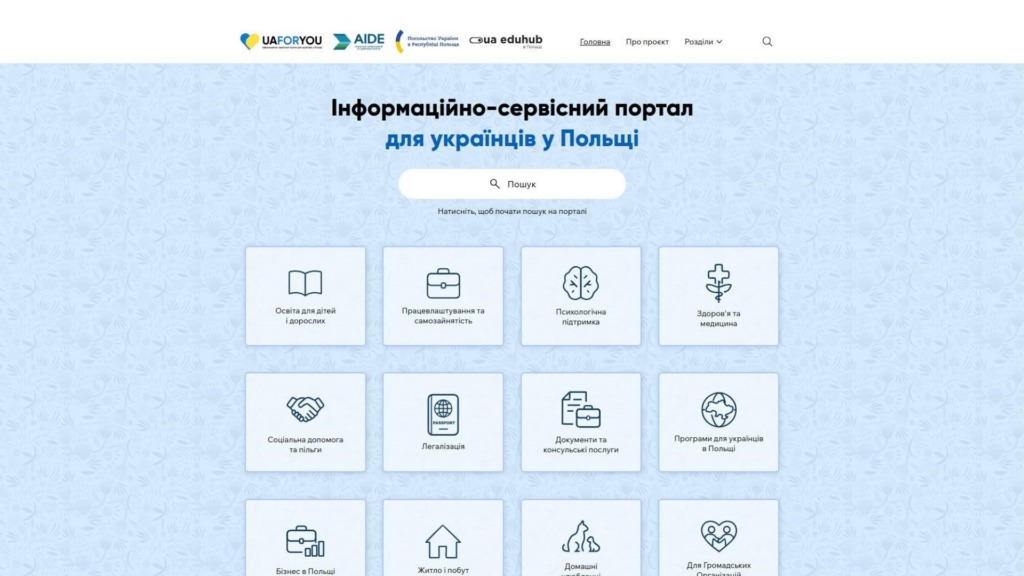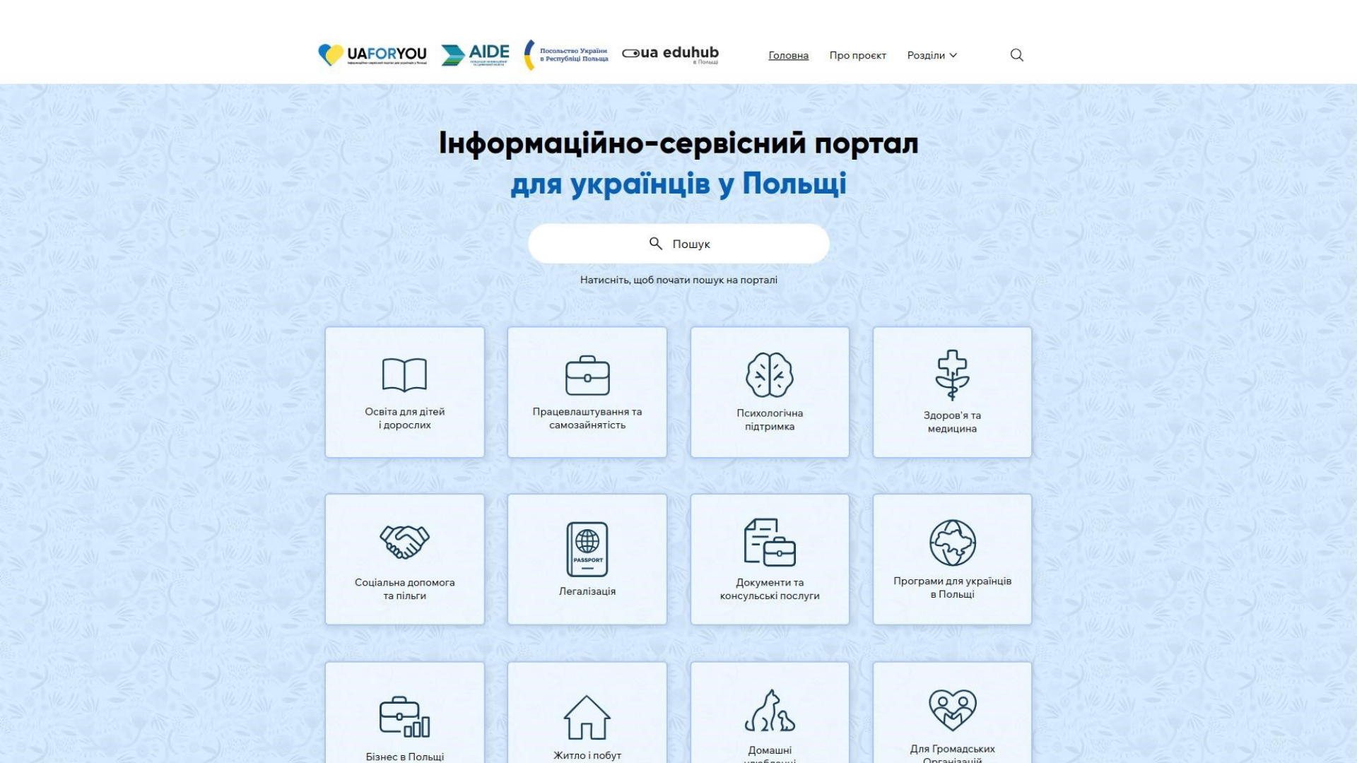 Для найбільшої української громади за кордоном, Інформаційно-ресурсний портал (UAFORYOU) для українців у Польщі вже забезпечив тисячі родин актуальною інформацією про можливості навчання, визнання документів, отримувати соціальні та медичні послуги, а також перелік українських громадських організацій, які діють у Польщі.