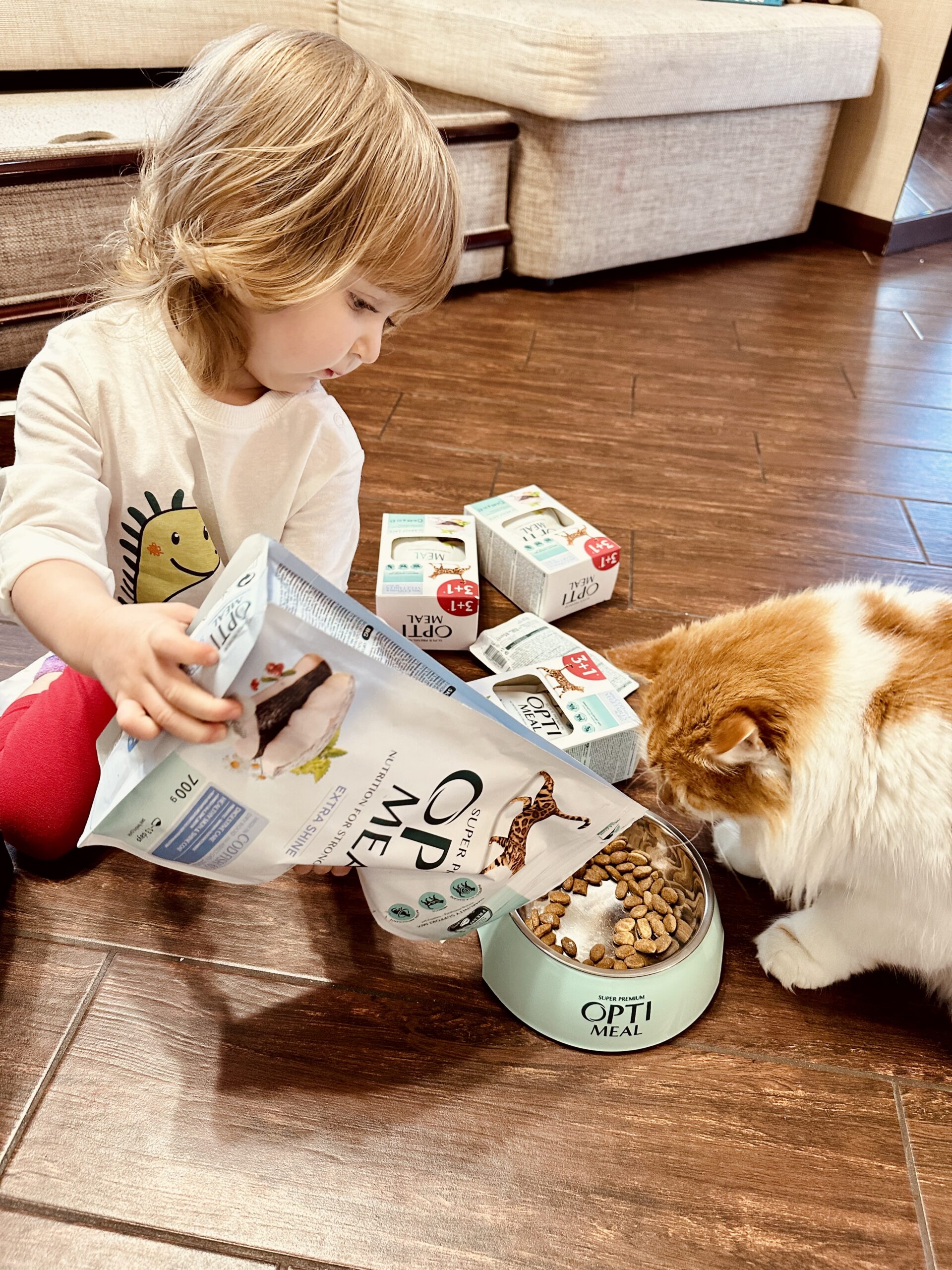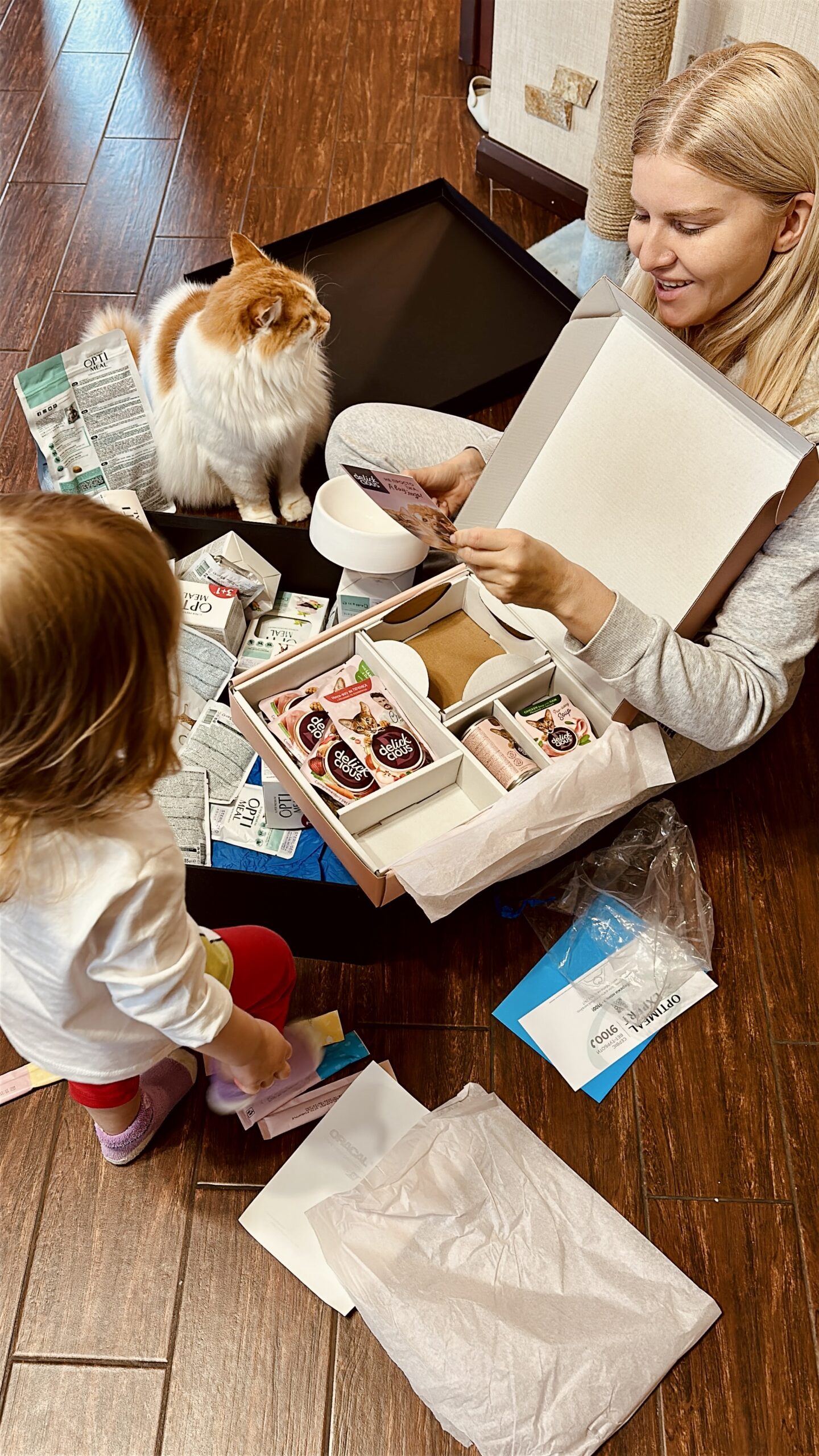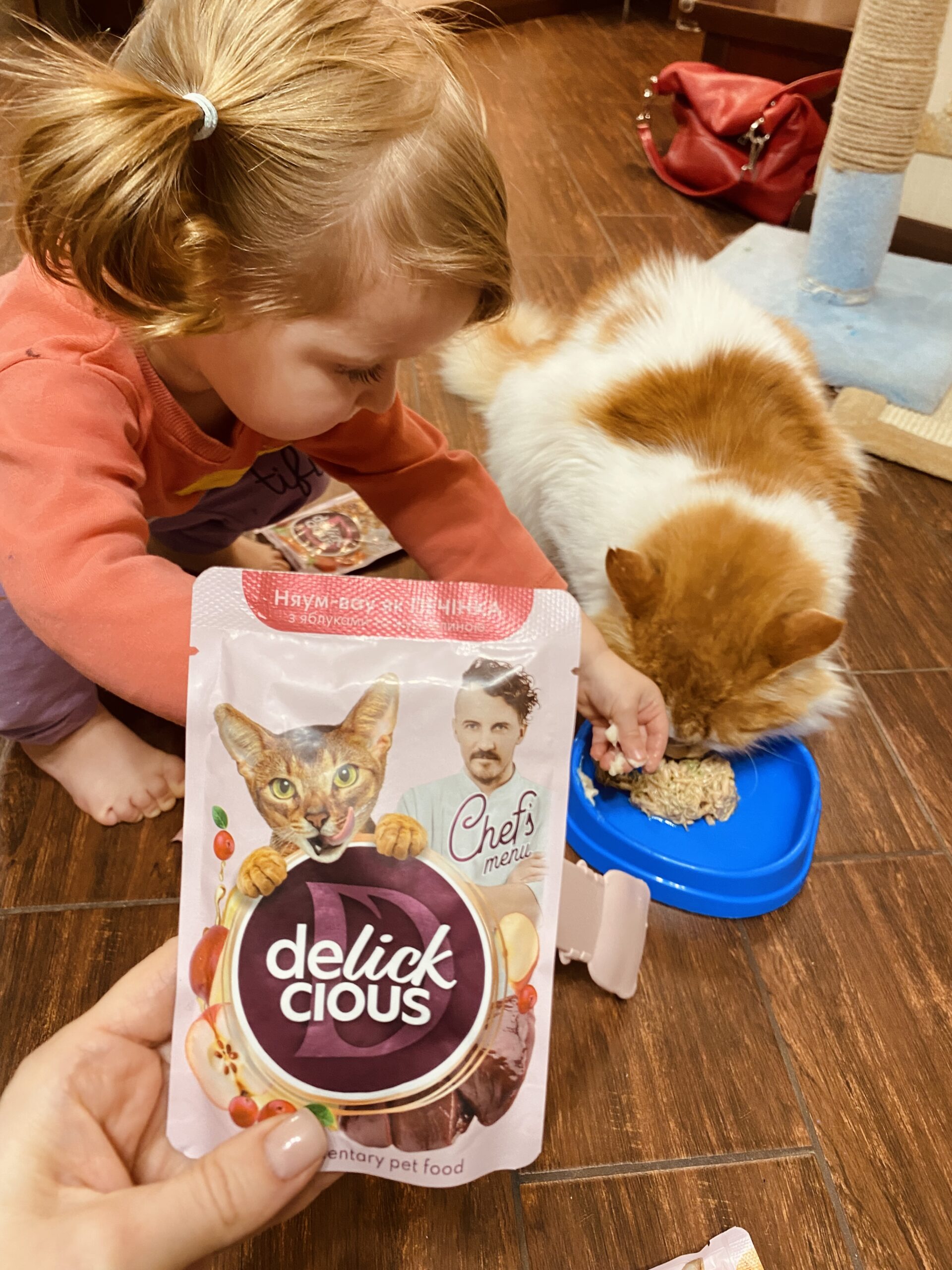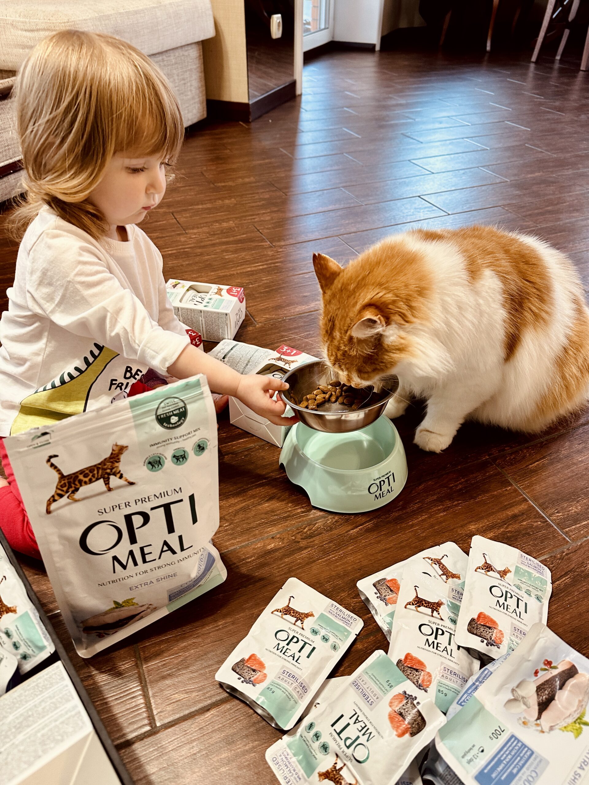 Думали, що жарт. Але на фразі «куди дивляться соцслужби», вирішила попередити чоловіка. Він спитав тільки одне: «соцслужба теж претендує на дегустацію оптимілу? Рижий буде проти». Ми, посміялись, звісно. Єдина прикрість – фото обрали не найкраще;). А прекрасні колеги з Кормотех вирішили подарувати коту і Ксенії трохи приємностей. І надіслали бокс із улюбленим кормом. Коробку з бантиком і смаколиками всередині. Так ми дізналися, що є спеціальна ложка для рідких смаколиків – тепер це улюблена спільна забавка доньки і кота. І що фірмова тарілка – це не просто тарілка. І да, лінійка, яка з ананасами, реально з ананасами. Знаєте, це по тепло і любов, коли тобі пакують якісну котячу їжу і зав’яують бантиком. Люди, знайомі і поки незнайомі, сто слів подяки вам. Ви усміхнули і нашу родину, і підписників наших.