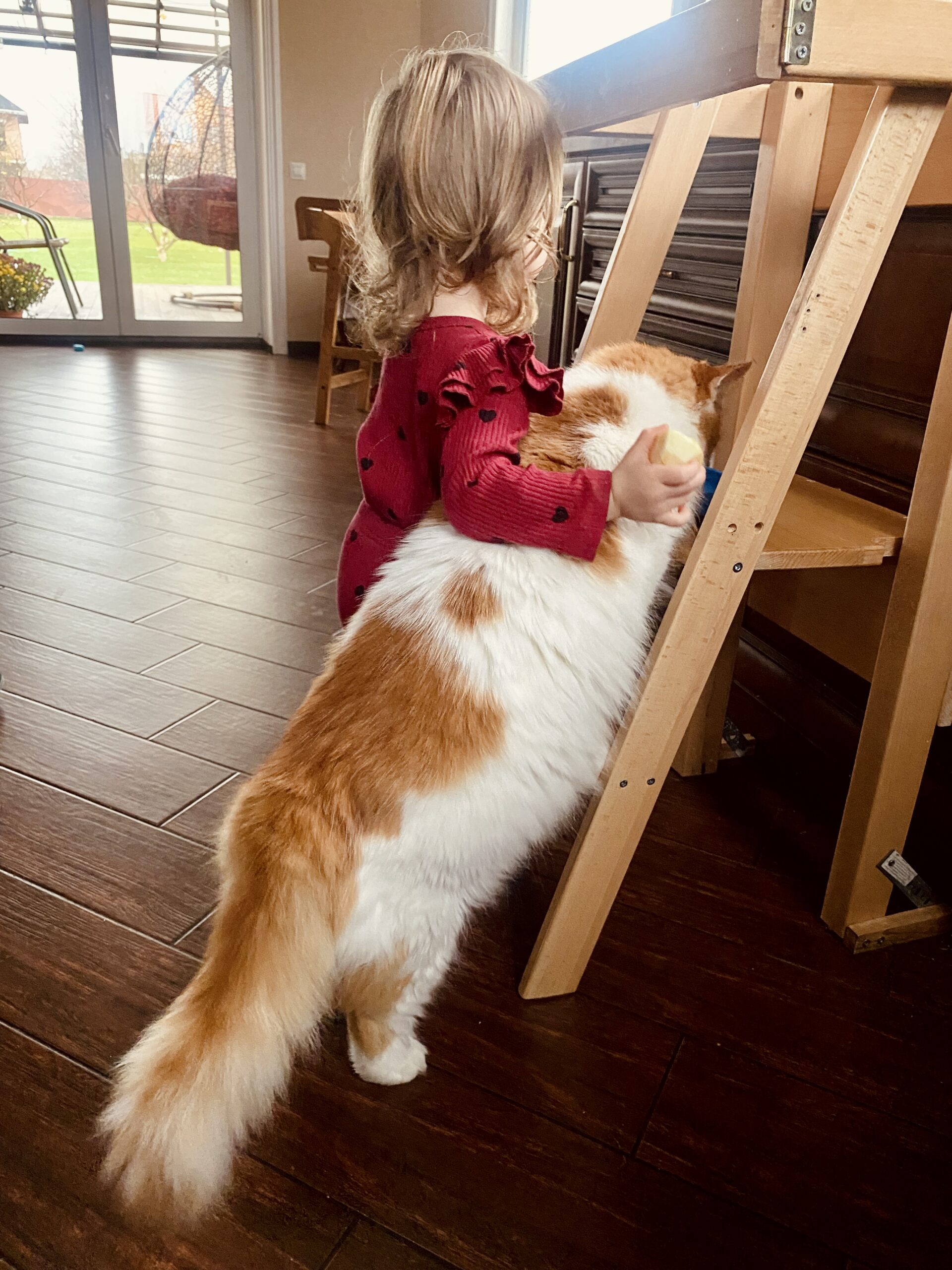 Дитинство – це коли кіт більший за тебе. Ксенія вже важить більше за кота, але коли він стає на задні лапи… їм обом категорично пощастило, що вони є одне в одного.