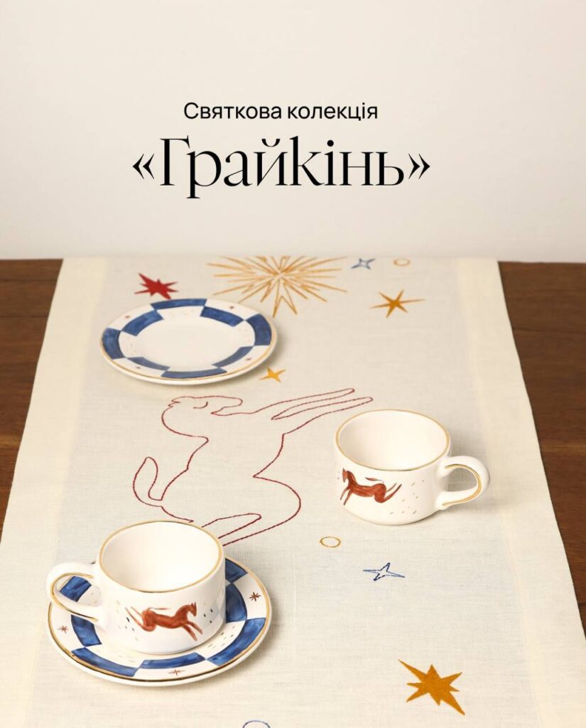 «Грайкінь» — це новорічна колекція бренду Serve it. Міні колекція допоможе прикрасити простір навколо. До неї увійшли ранер, набір серветок та чашка з блюдцем з зображенням символу наступного року коня.