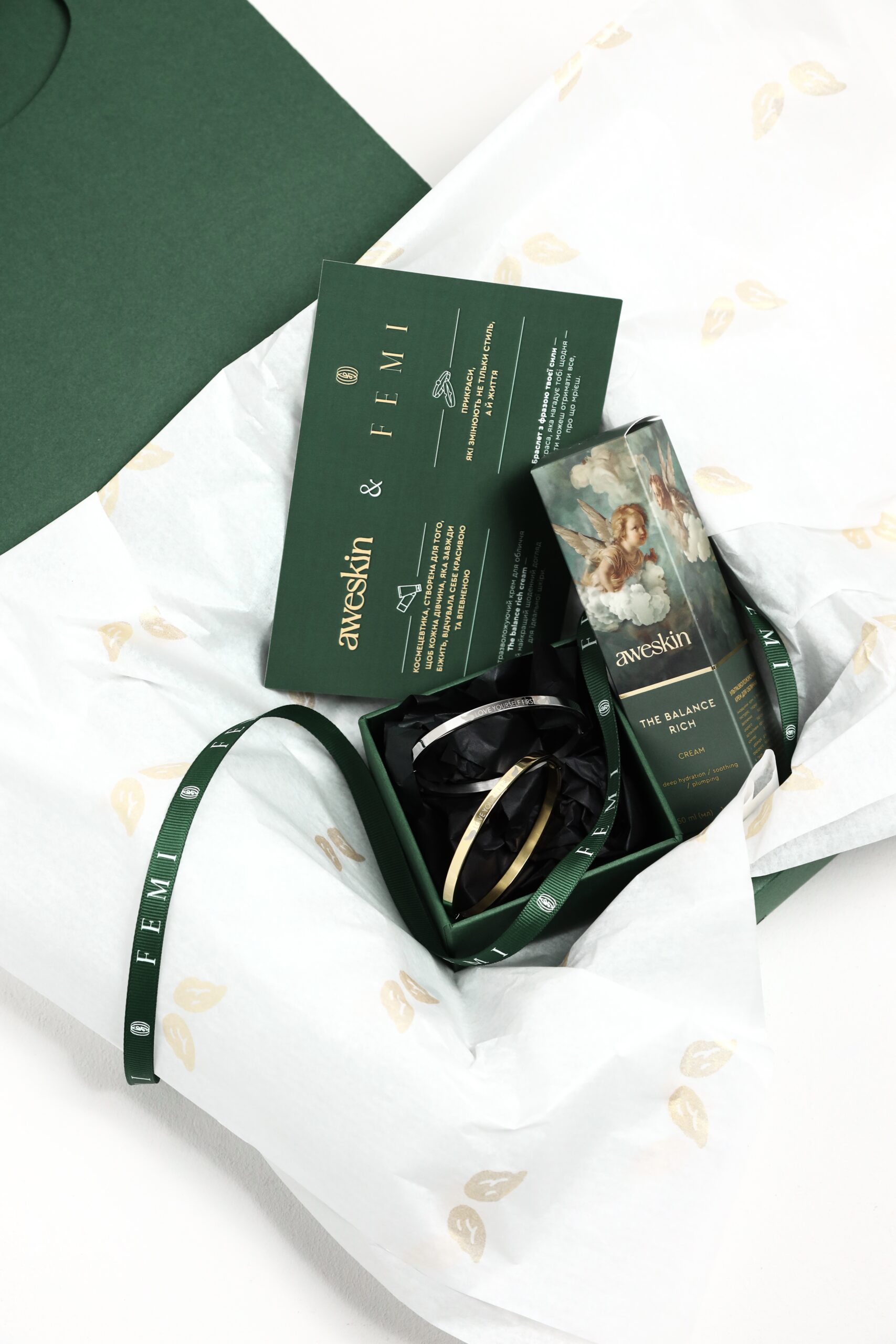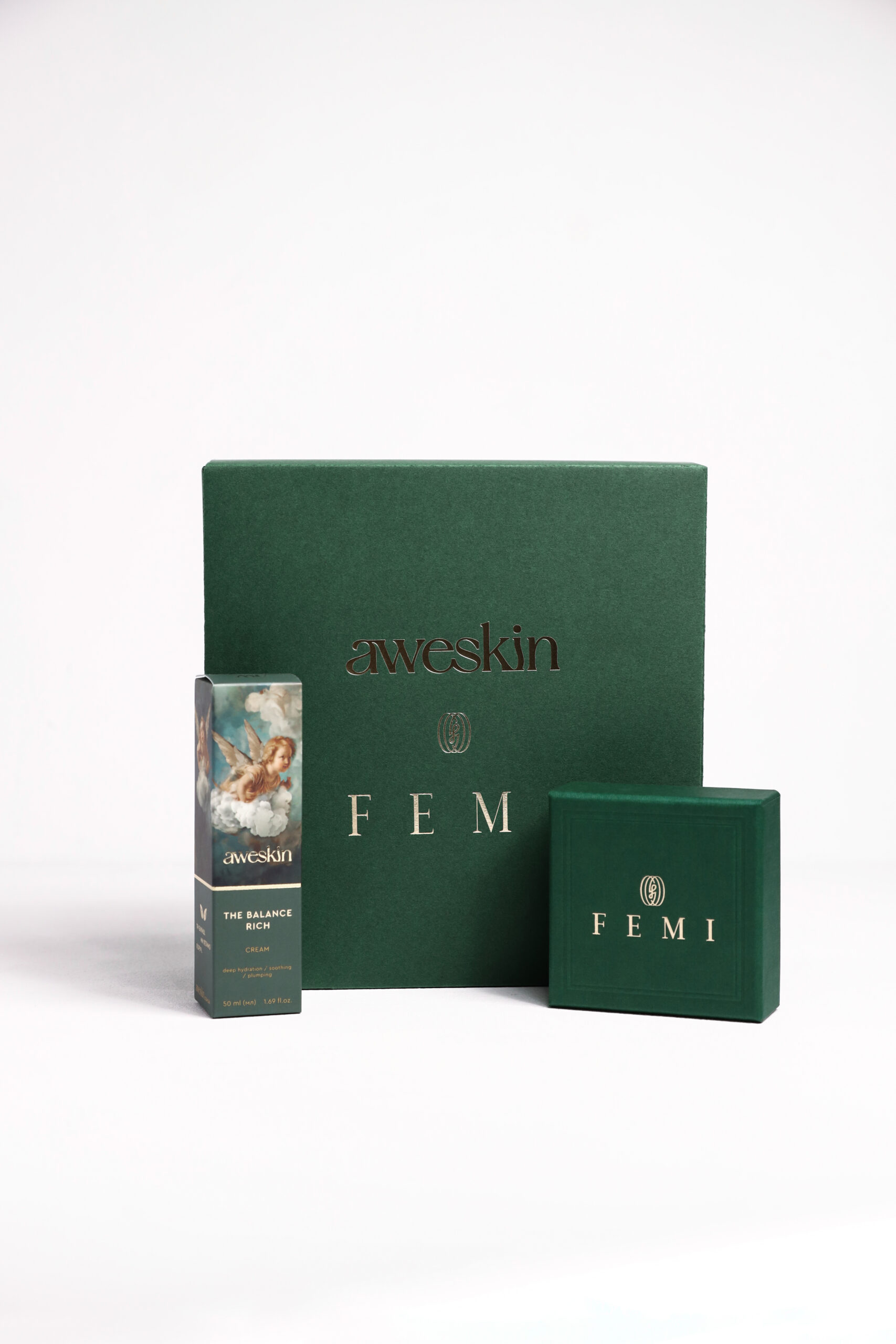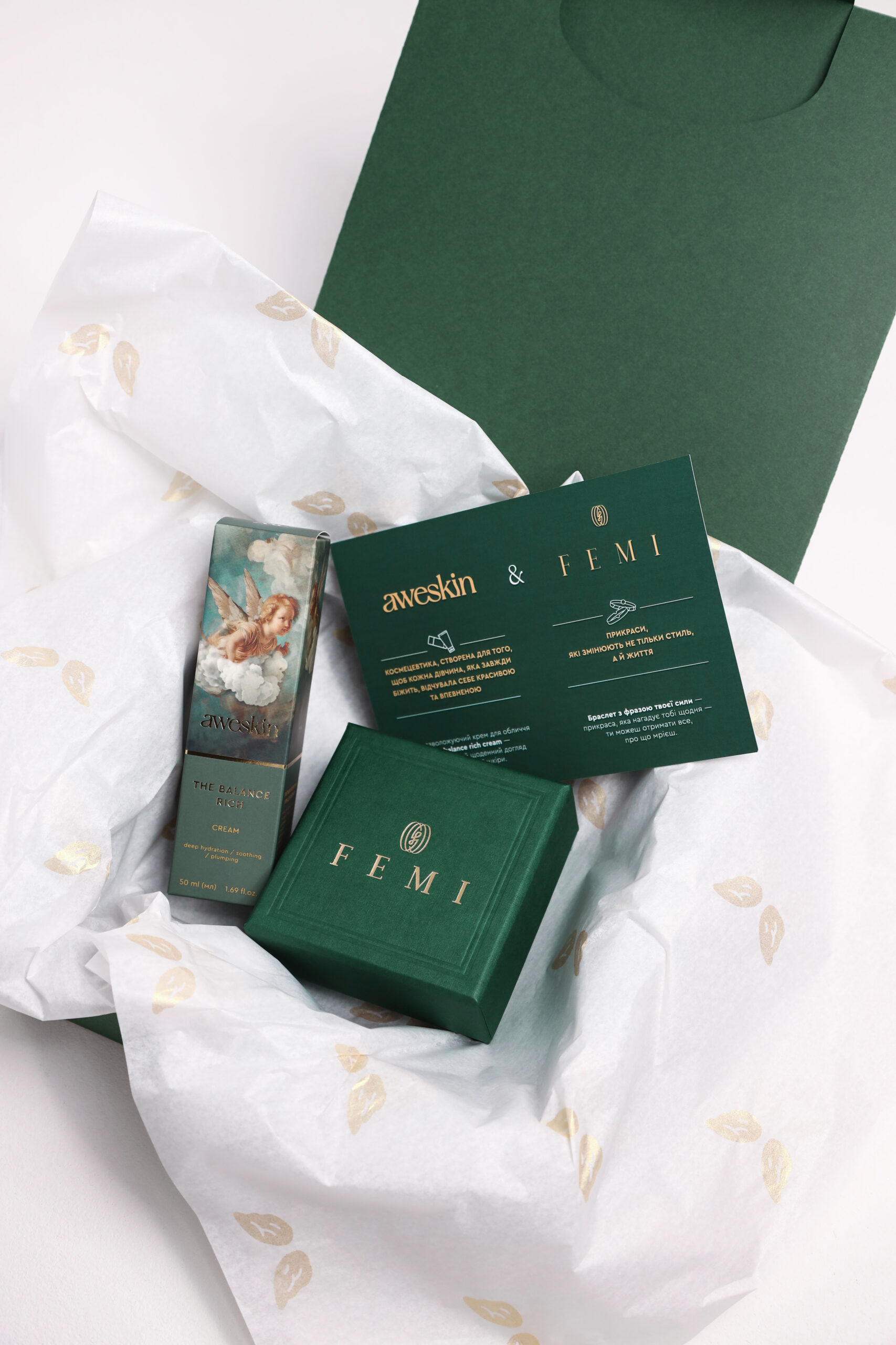 Український бренд преміальної космецевтики Aweskin у співпраці з брендом прикрас Femi представив лімітований подарунковий сет «Love Yourself First», у якому зовнішній догляд поєднується з внутрішнім сенсом. До боксу увійшли браслет з гравіюванням «Love Yourself First» та крем для обличчя The Balance Rich Cream — бестселер Aweskin, ультразволожуючий крем для обличчя, створений для щоденного комфорту та глибокого зволоження шкіри.