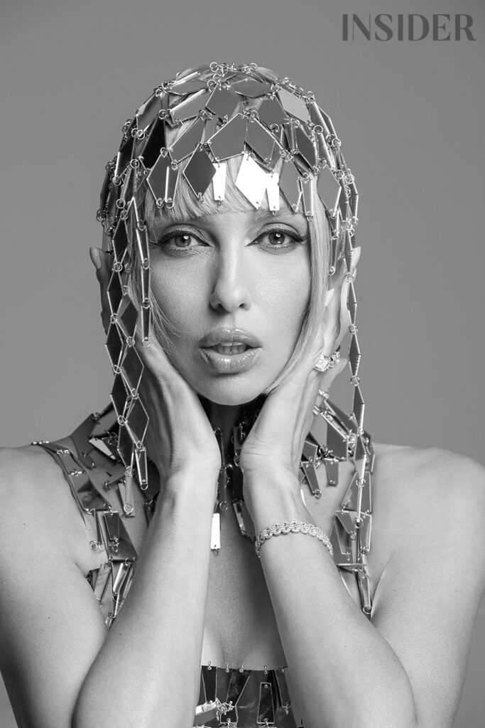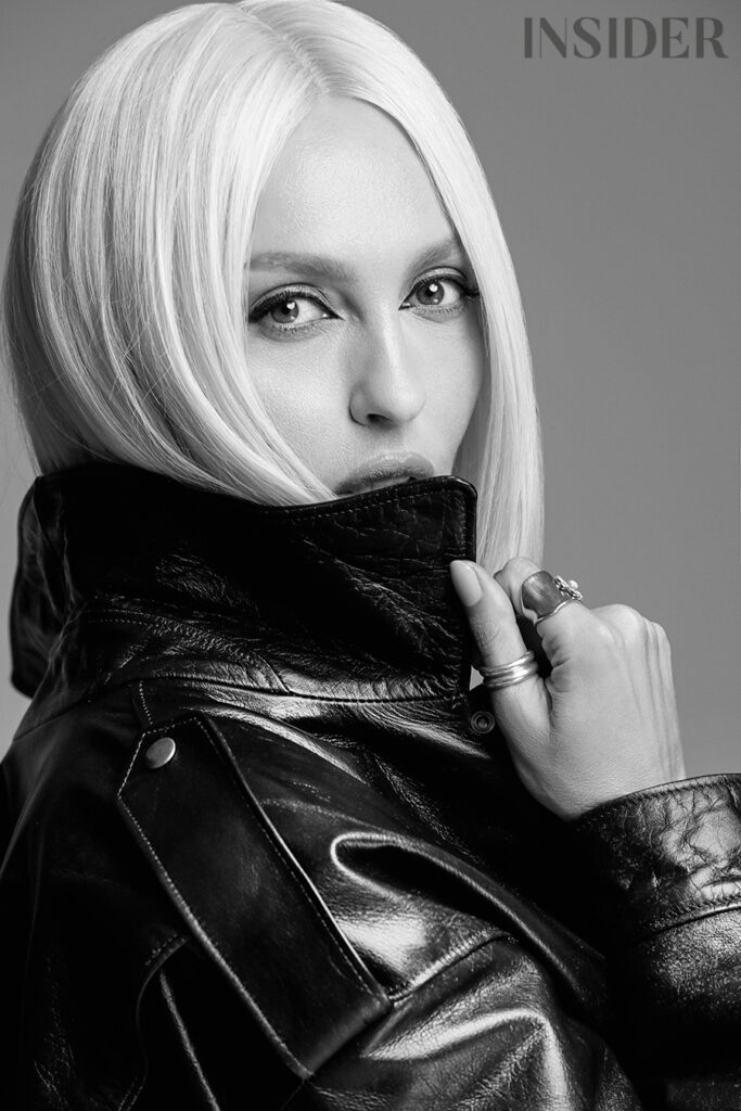 Артистка постала у стильному каре платинового блонду, мереживному бра та об’ємній шкіряній куртці у новій зйомці для INSIDER.UA.