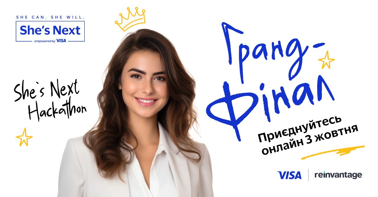 Visa, світовий лідер у сфері цифрових платежів, разом із партнером Reinvantage анонсують гранд-фінал першого міжнародного хакатону She’s Next, який відбудеться онлайн 3 жовтня.