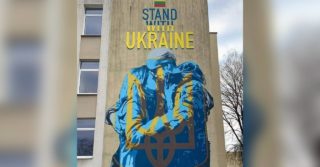 - Український прикордонник прощається з дружиною: у Вільнюсі намалювали мурал