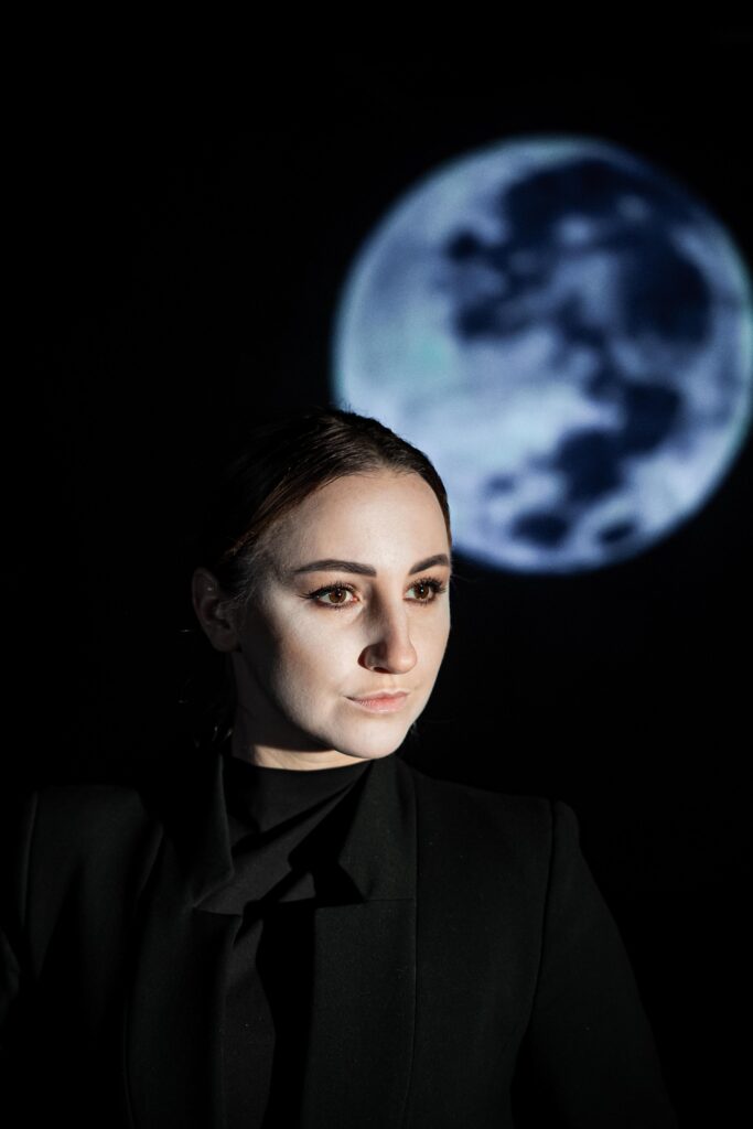Це історія про Елеонору, яка не може вирватися з аб’юзивного кола й повільно зникає в ньому – як місяць, що тане в нічному небі. Елеонора уособлює безліч людей, які живуть поруч із кривдником і не бачать виходу. Також це історія про Незнайомця, який має власну таємницю і намагається розбудити іншого – Белукку, людину, що втратила здатність жити по-справжньому. Белукка – образ тих, кого поглинають рутина й страх” – пояснює Христя Люба.