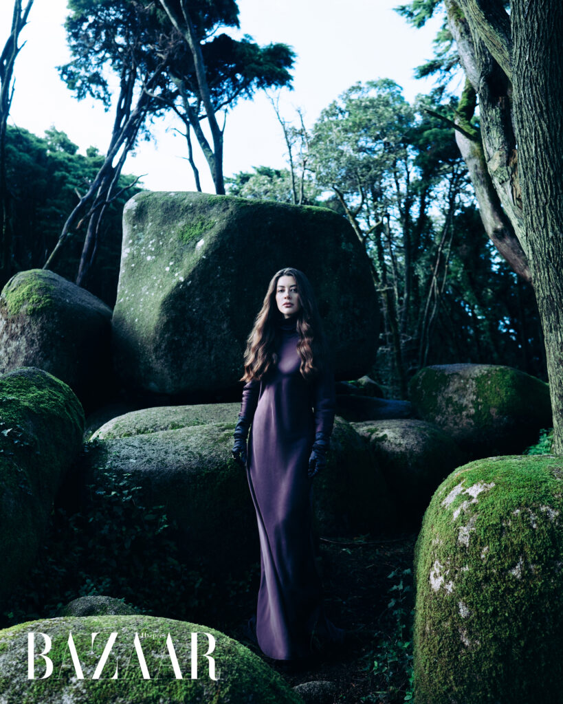 Зйомки проходили в Сінтрі — містичному містечку поруч із Лісабоном, серед густого лісу, скель та океанічного узбережжя. На узбережжі Адрага, за двадцять хвилин від мису Рока, найзахіднішої точки Європи, Раміна позує у рожевій сукні від українського бренду J’amemme — моделі Cloud, представленій на Тижні моди в Нью-Йорку. Плісована тканина ручної роботи додає образу легкості та витонченості. Інший образ — бежевий костюм від MYxMY, де асиметрія та подовжені рукави створюють скульптурний силует, а прикраси від Grains de Verre підкреслюють ручну роботу, яка так близька журналістці, що звикла «створювати» матеріали власними руками.