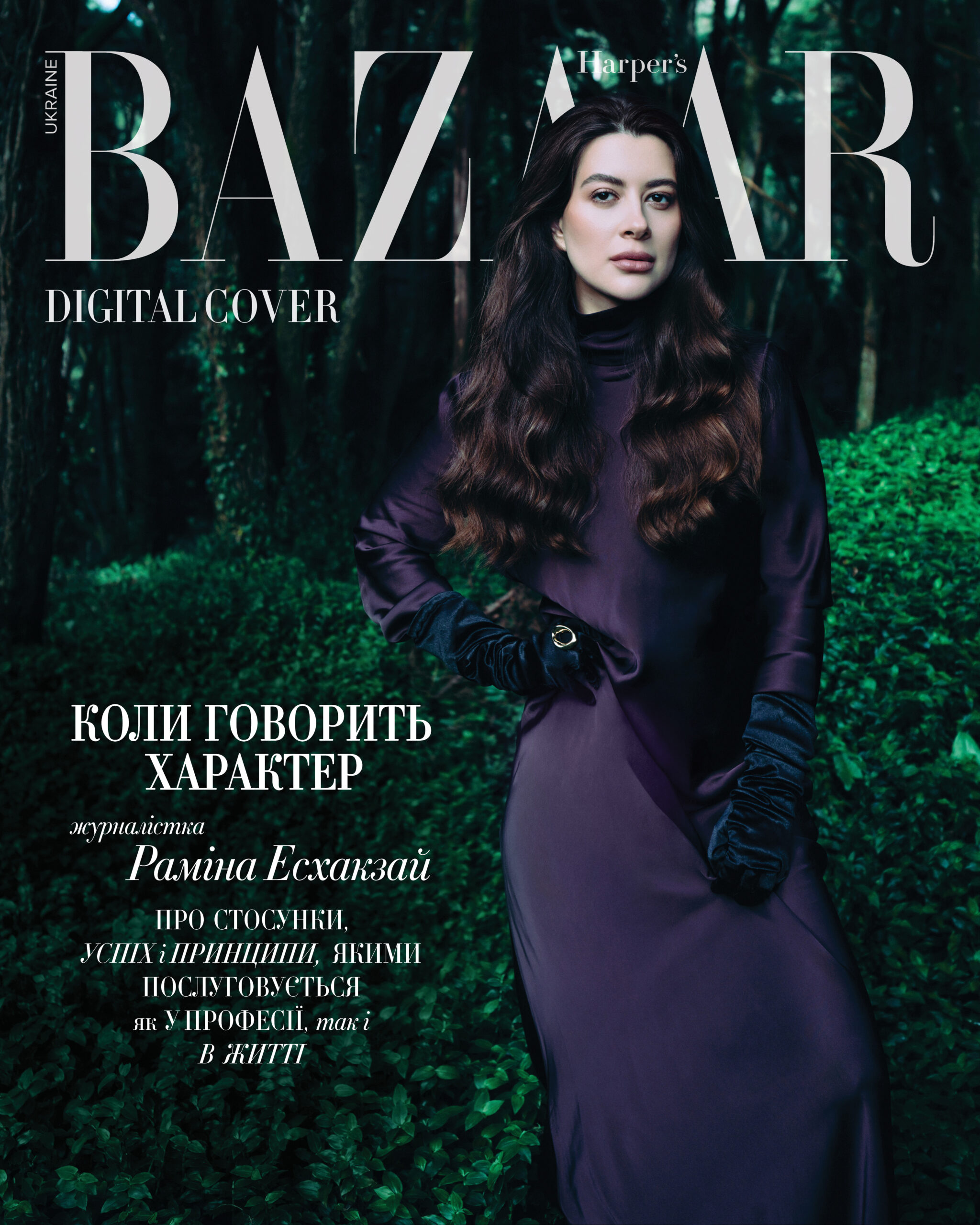 На обкладинці журналістка постає у темній бордовій сукні, нагадуючи, що розкіш може бути тихою. Ця стриманість не випадкова. У житті Раміни немає місця зайвій публічності чи слідуванню чужим правилам. Вона говорить лише тоді, коли є сенс, і не боїться відвертості — але її прямота завжди має межі безпеки та захисту близьких. Там, де більшість обирає мовчати, вона обирає відповідальність.
