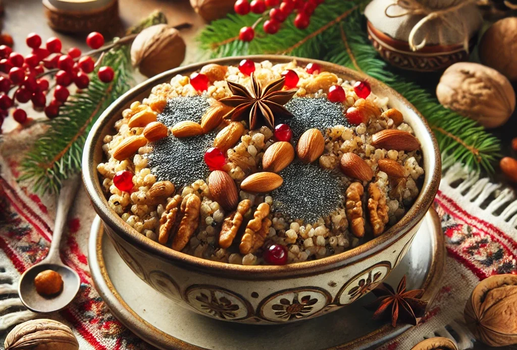 Пшеницу (или пшеничное зерно) заливают на ночь холодной водой в соотношении один к двум, а затем варят на медленном огне. Сваренную кашу заливают компотом до консистенции густого супа. Компот должен быть концентрированным и сладким — из яблок, груш и чернослива. И никаких изюма, мака и других компонентов.