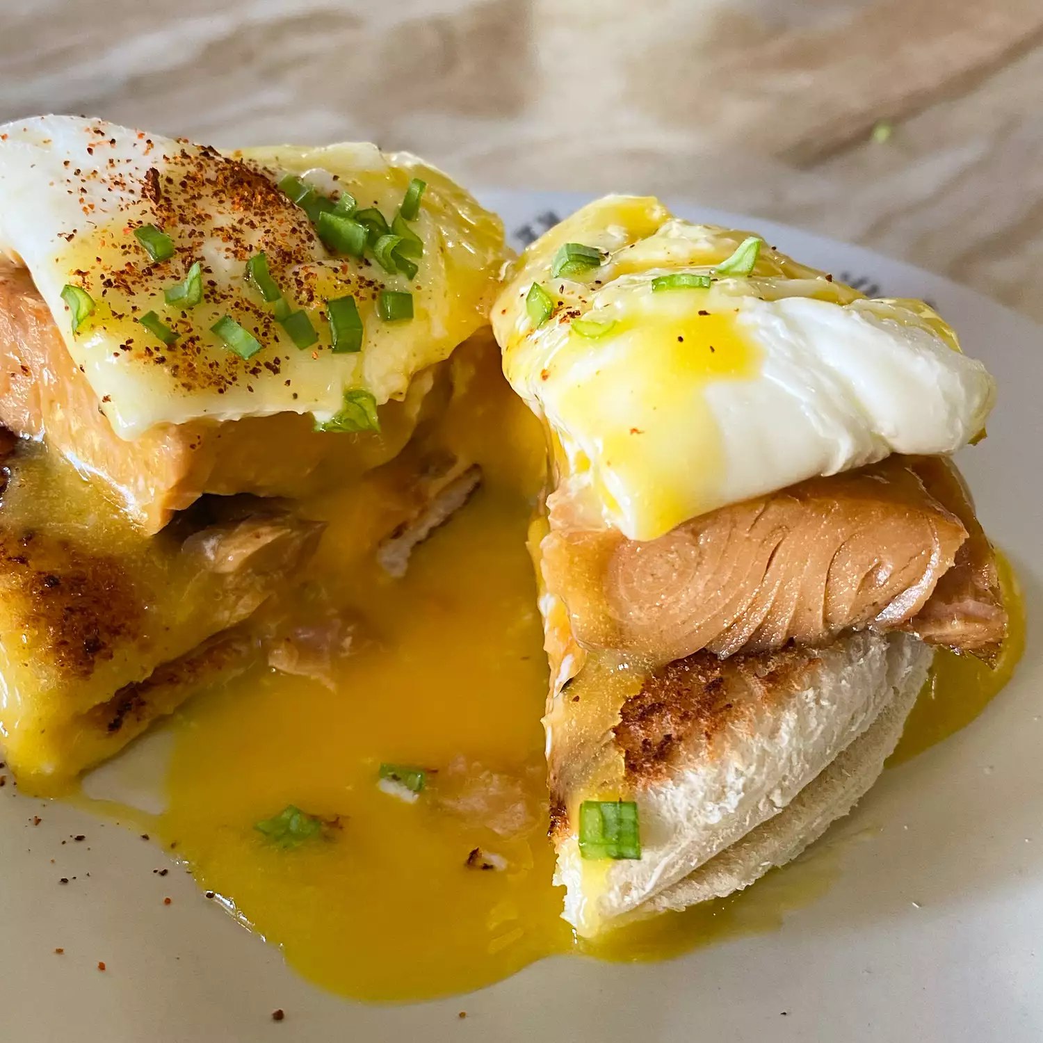 Копчений лосось та житній хліб додають родзинки традиційним яйцям Бенедикт. Соус можна залишати при кімнатній температурі до години. Перед подачею обережно розігрійте його на водяній бані.
