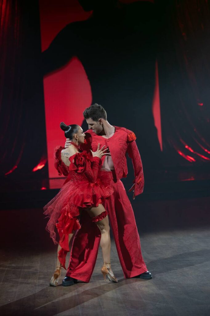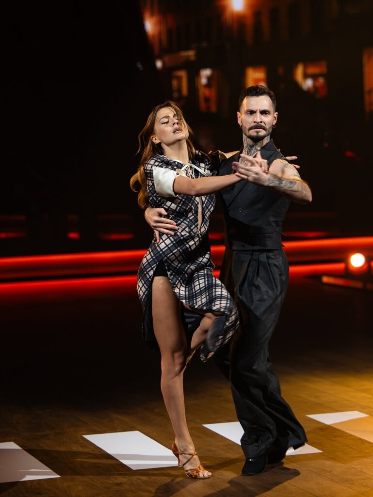 Наталка Денисенко з’явилася на паркеті разом зі своїм танцювальним партнером Антоном Нестерко і стала однією з найзапальніших героїнь цього вечора. Пара вийшла з танцем, який вважається одним із найскладніших у бальних танцях, — самбою. На проєкті «Танці з зірками» її неодноразово називають «вбивчим» танцем, адже далеко не всім парам, навіть у різних сезонах шоу, вдавалося впоратися з цією постановкою. Втім, Наталці Денисенко та Антону Нестерко вдалося не лише технічно правильно виконати самбу, а й наповнити її глибокою акторською драматургією. Постановка вразила емоційністю та багатошаровістю образів: Наталка ніби перевтілювалася з однієї ролі в іншу. А найбільше аудиторію здивував фінал — разом із Антоном наприкінці танцю вона піднялася над паркетом на полотнах і так завершила виступ.