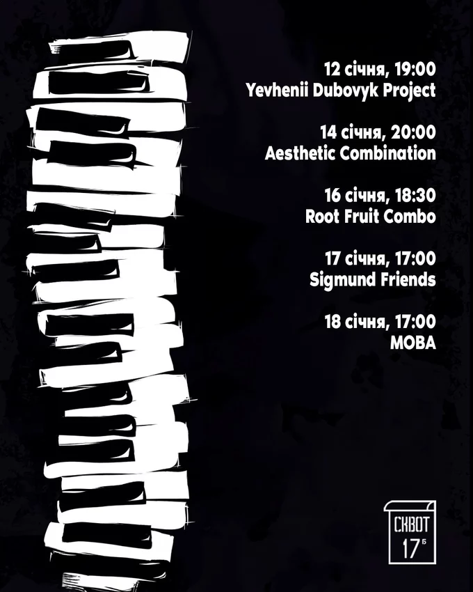 У Squat 17b проведуть фестиваль-антологію до 100-річчя українського джазу. Подія триватиме з 12 до 18 січня 2026 року та об’єднає концерти, виставку й благодійні аукціони. Про це повідомили на сторінці культурного простору.