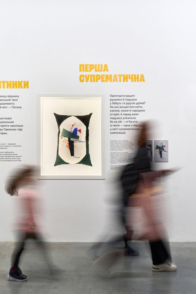 На інтерактивній виставці Ukraine WOW зʼявився новий експонат ― подушка, на якій вишита одна з перших супрематичних робіт Казимира Малевича. Її відтворили ГО Ukraine WOW разом з Etnodim за участі експерток ― дослідниці творчості Казимира Малевича Тетяни Філевської, мистецтвознавиці Тетяни Кари-Васильєвої і майстрині художньої вишивки Валентини Костюкової. Завдання проєкту — нагадати про звʼязок Малевича з Україною та вплив українського народного мистецтва на його творчість.