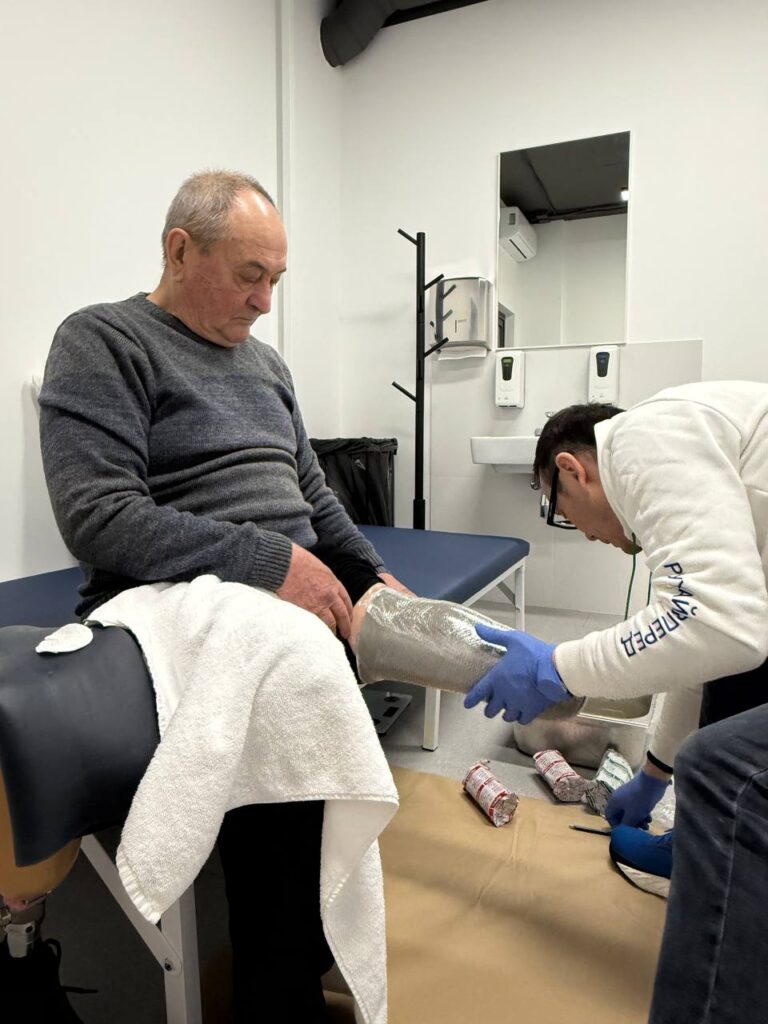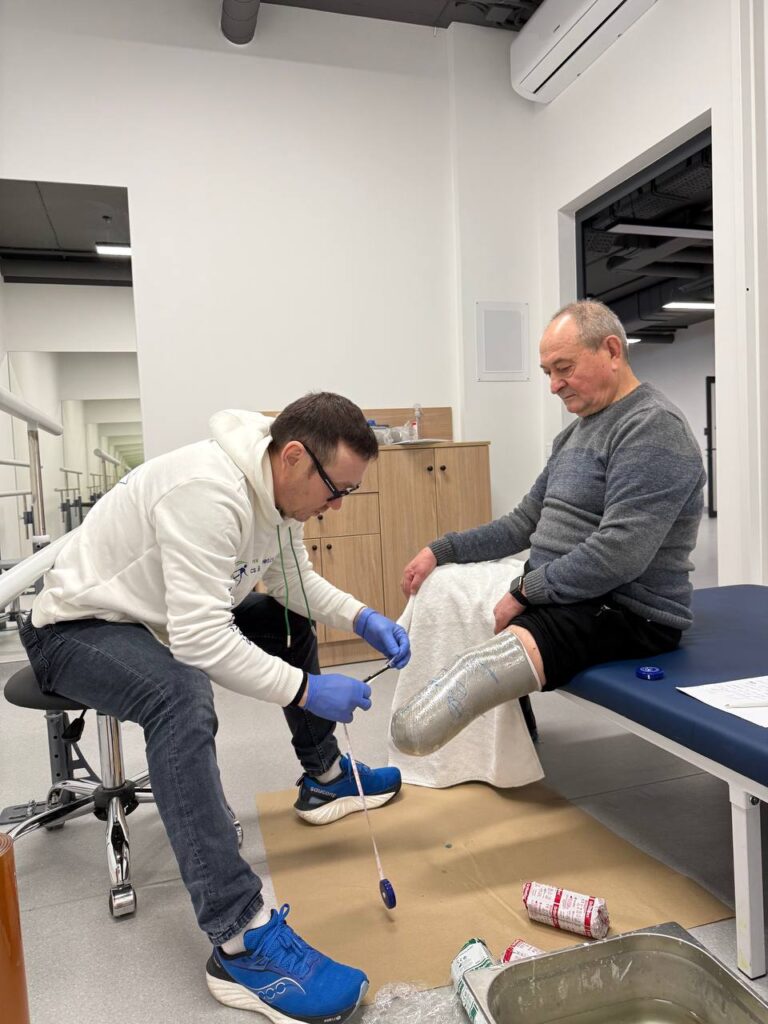 Тричі на тиждень відвідує центр MCOP Україна й 77-річний Микола Кривоніс. Нині у нього перший етап протезування — кастинг. Чоловік втратив ліву ногу ще у травні 2022 року — коли на подвір’я його будинку на Донеччині прилетів російський снаряд. Сьогодні Микола Олександрович разом із родиною живуть у Києві. Чоловік потребує заміни куксоприймача, щоб протез відповідав змінам у тілі та забезпечував максимальний комфорт під час руху.