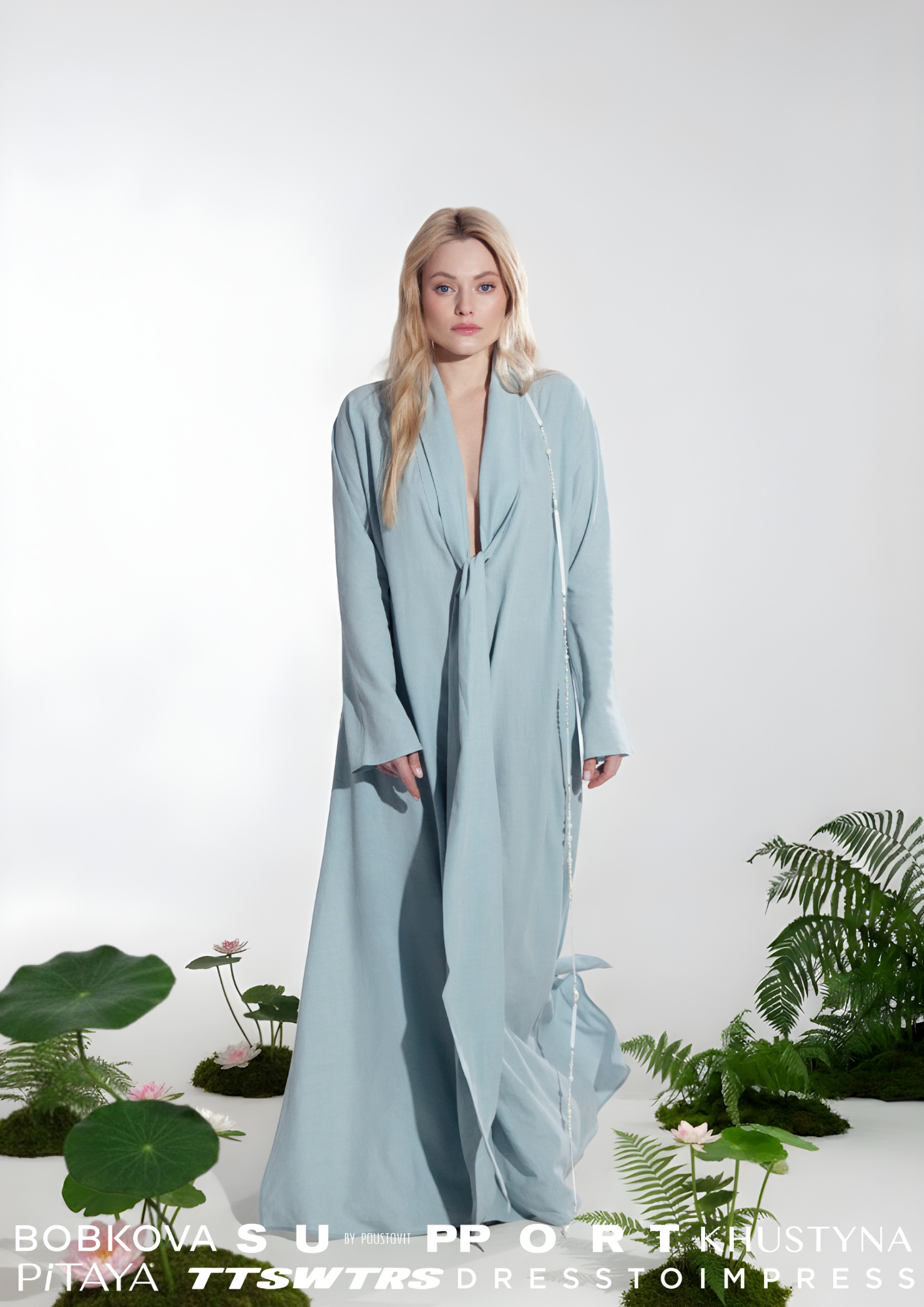 У лінійці BOBKOVA, DRESSTOIMPRESS та YEDYNA представлені вечірні та коктейльні наряди, костюми, нічні сорочки та білизна. Створені з прозорих та натуральних тканин, вони відтворюють атмосферу ранкового туману та нагадують легкі силуети одягу мавок. KHUSTYNA від PITAYA доповнює образи купальниками та витонченими шовковими хустинами, які нагадують Темне озеро, вкрите лататтям та папороттю. Візуальні символи, які використовують українські дизайнери, підкреслюють ключовий меседж колаборації: міф — це не минуле, а частина нашої сучасної ідентичності.