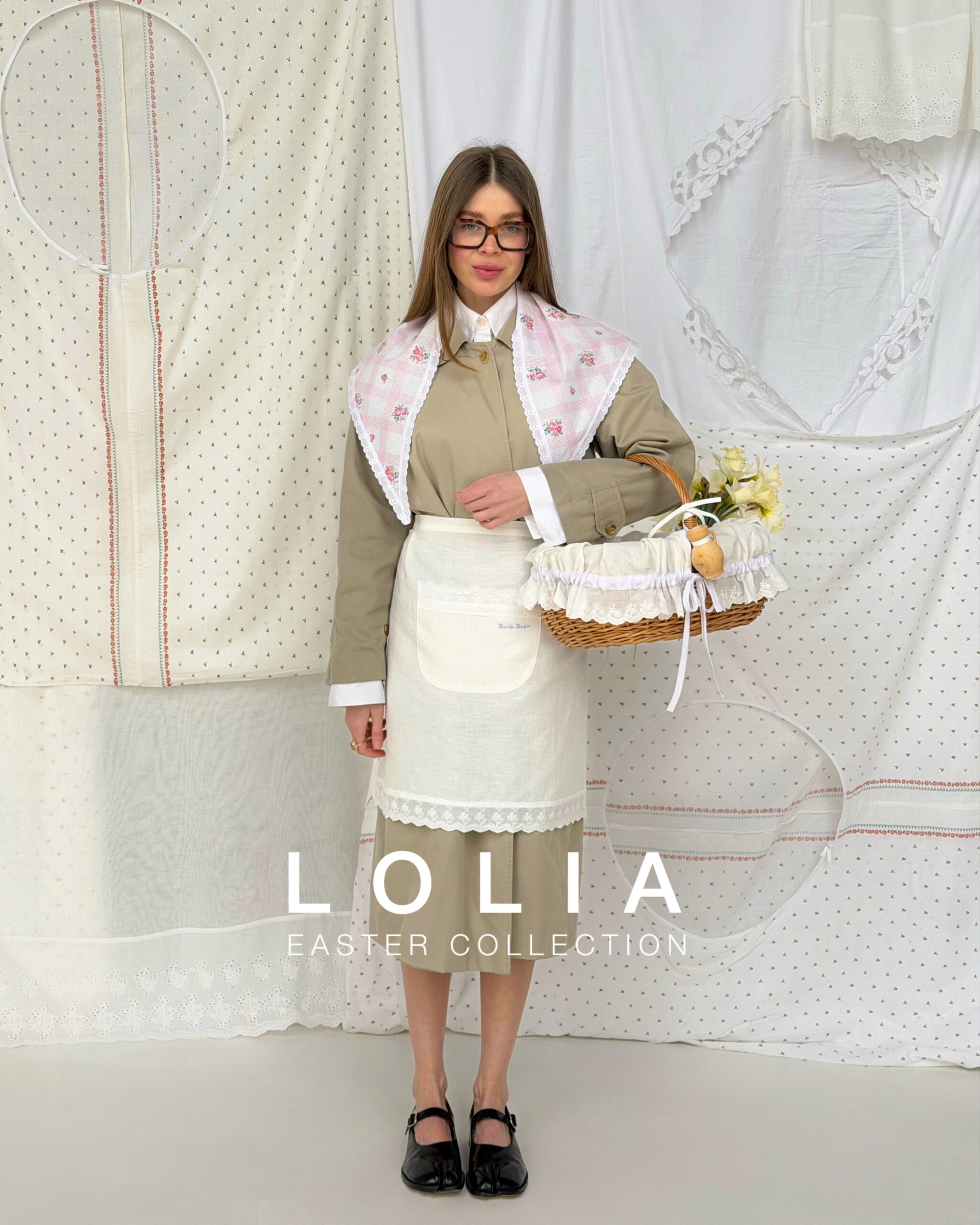 У центрі колекції — хустки, косинки та фартух LOLIA з бавовни і льону. Вироби натхненні спогадами світлими, як великодній ранок — коли ти знову дитина, у руках ошатний кошик з паскою, ба міцно обіймає і розповідає свої незлічені історії.