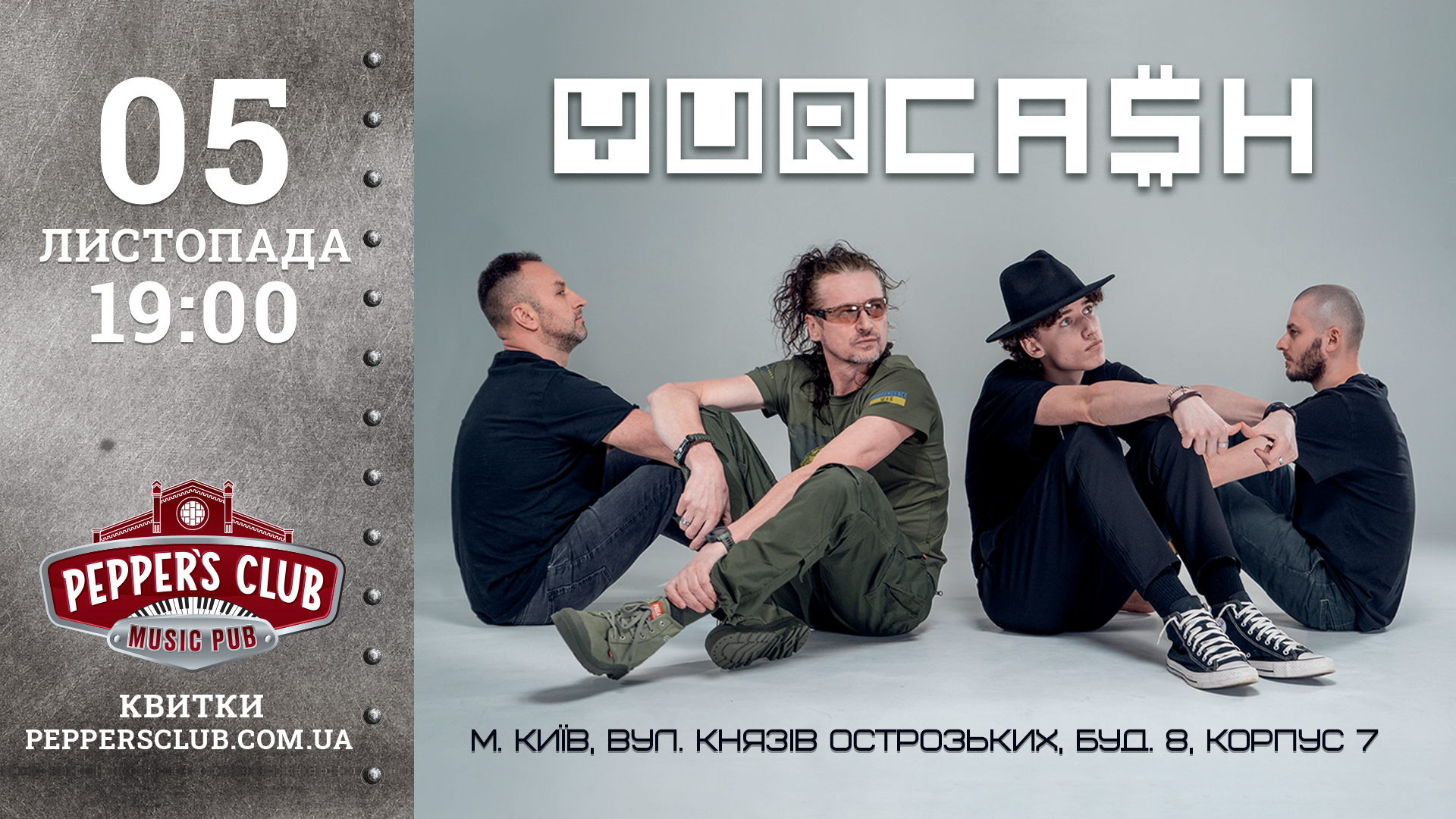 5 листопада в Pepper’s Club відбудеться концерт гурту Yurcash. Колектив представить програму з найвідоміших композицій, серед яких «Менуети», «Жовтий скотч», «Мойдодир», а також нові пісні. На слухачів чекає живий звук, щира атмосфера й відвертість, що стала фірмовою рисою гурту.