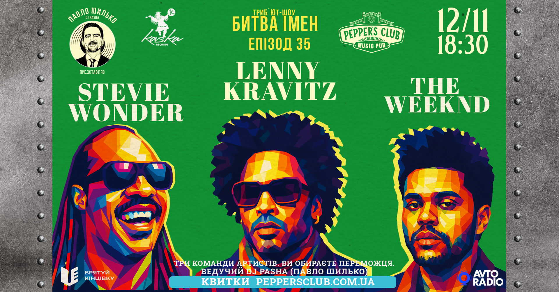 12 листопада відбудеться нова музична битва легенд від шоумена Павла Шилька (DJ Паші). На одній сцені зустрінуться три покоління музики — Стіві Вандер, Ленні Кравіц та The Weeknd. Це унікальне шоу об’єднає живе виконання хітів, історії про культових артистів і інтерактив із публікою. Дві команди українських виконавців змагатимуться в музичному батлі, а переможця визначать глядачі.