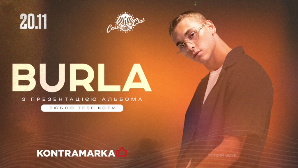 Цього вечора сцена Caribbean Club належатиме молодому українському виконавцю BURLA — він презентує новий альбом «Люблю тебе, коли…». Артист, відомий своїми щирими піснями про кохання, представить ексклюзивну програму із живим звучанням, прем’єрами нових треків і запрошеними зірками.