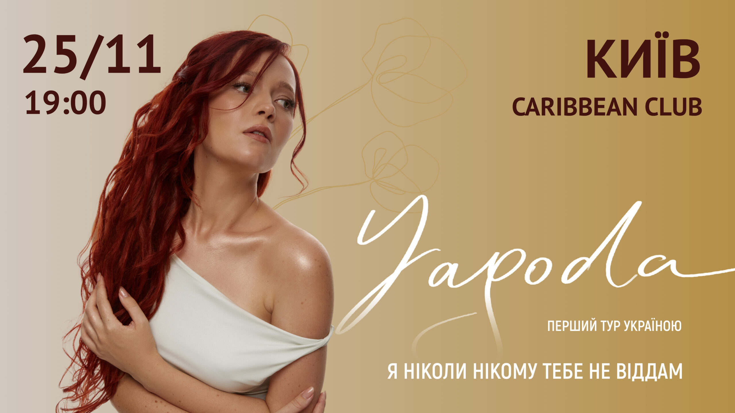 Співачка YAGODA виступить із концертом у межах свого першого всеукраїнського туру. Її пісні — це щирі історії про кохання, втрату й силу почуттів, а хіт «Я ніколи нікому тебе не віддам» став справжнім трендом TikTok і підкорив мільйони слухачів.