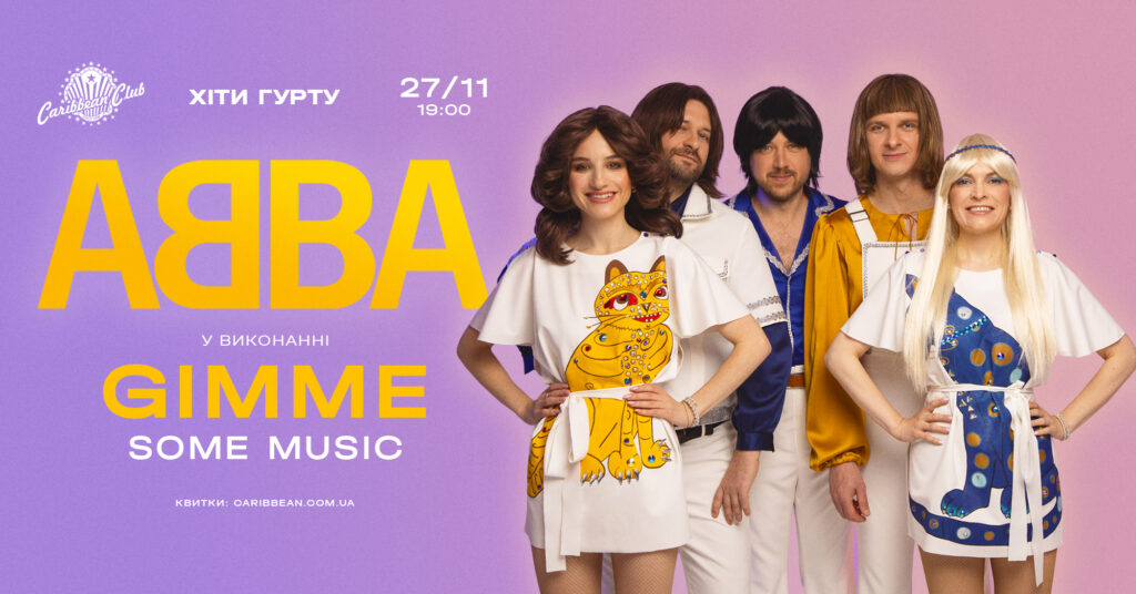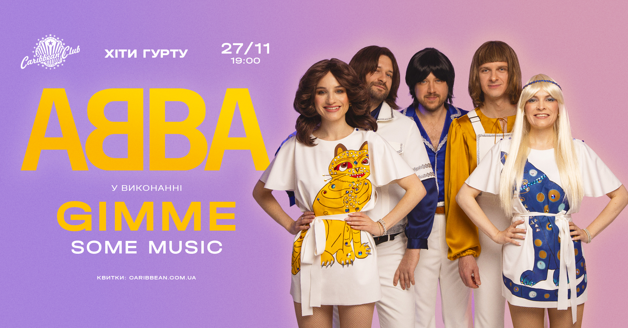 Caribbean Club запрошує на триб’ют-шоу ABBA Tribute від гурту Gimme Some Music, першого професійного українського триб’ют-бенду легендарної шведської четвірки. Наживо пролунають хіти Dancing Queen, Mamma Mia, Waterloo, Gimme! Gimme! Gimme! — пісні, які вже пів століття залишаються улюбленими на танцмайданчиках у всьому світі.