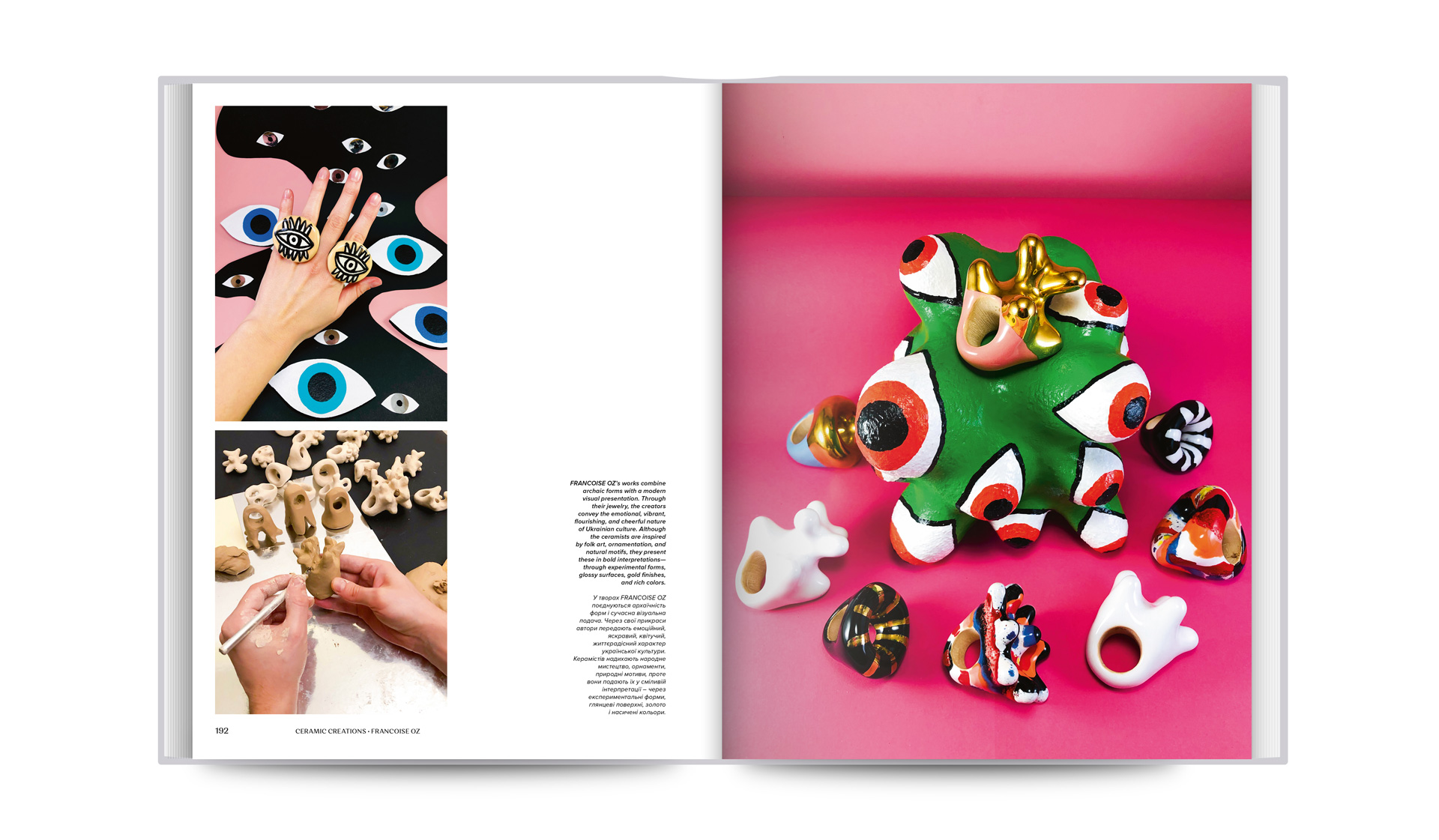 Також редакція приділила увагу модним брендам, що створюють креативні лінійки художніх прикрас, де традиційні мотиви стають інструментом розкриття глибинних сенсів. У книзі розглядається і створення керамічних прикрас, що мають давню історію на територіях України та сьогодні отримують нову інтерпретацію, а також експерименти з незвичайними матеріалами, які описані в розділі Rethinking Materials.